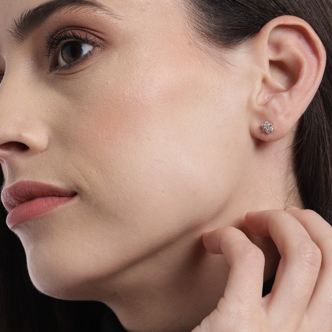 Product Description:- Inspired by the beauty of each unique snowflake, these beauties inspire to embrace your uniqueness and wear your elegance. Made out of 925 sterling silver, embellished with AAA grade Zirconia, this design is a must have.