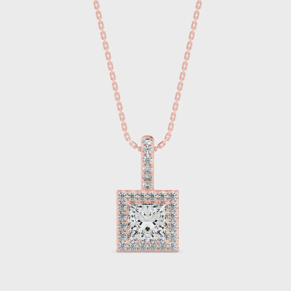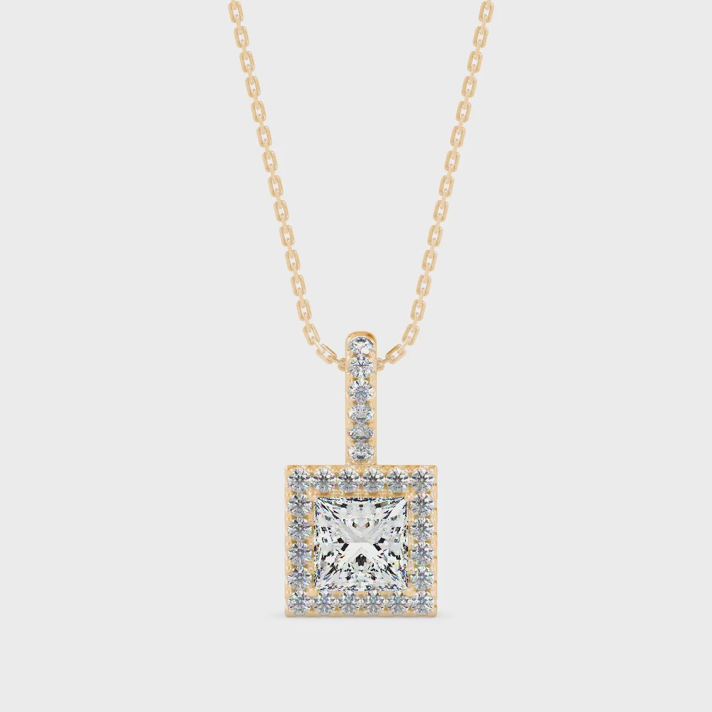 0.5 CT Square Solitaire Gold Pendant with Lab-Grown Diamonds without Chain
