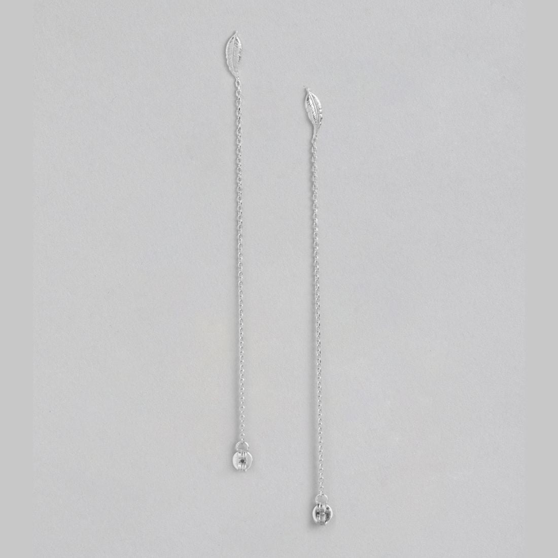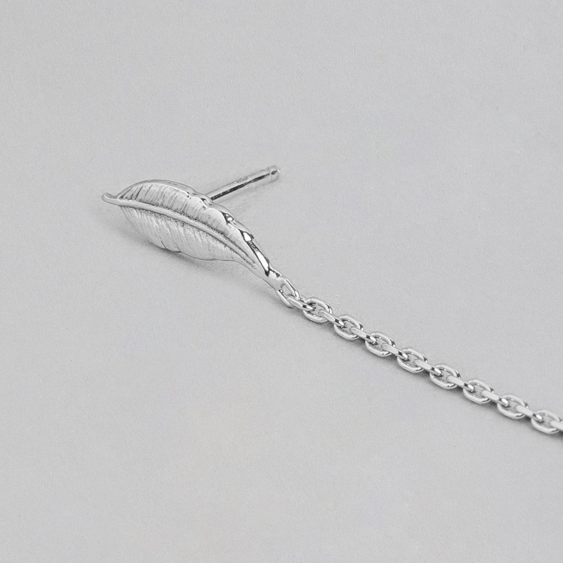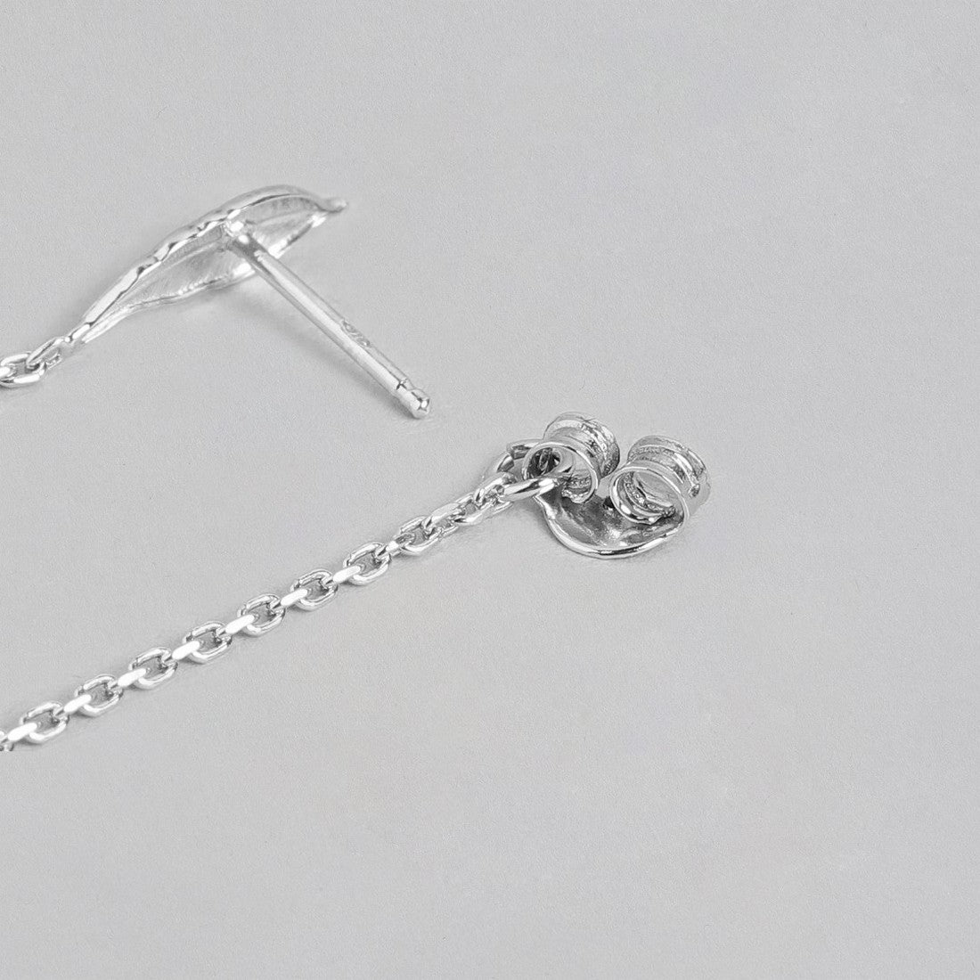 Nature's Elegance Rhodium Plated 925 Sterling Silver Leaf & Chain Earring
