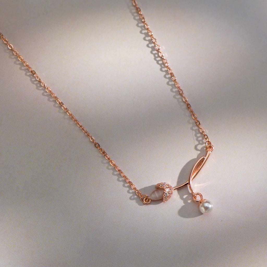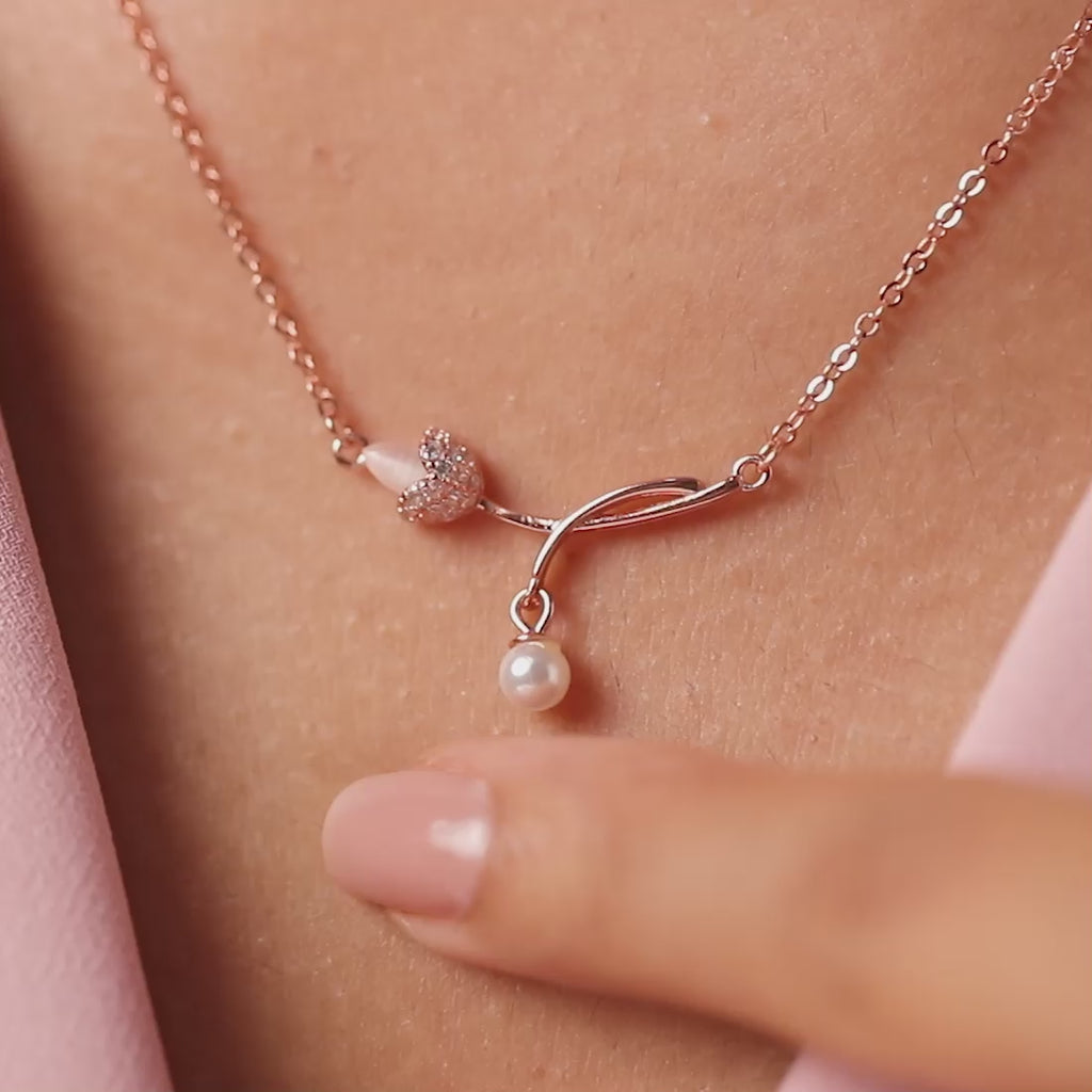 Her First Pearl Blossom Rose Gold Plated Necklace