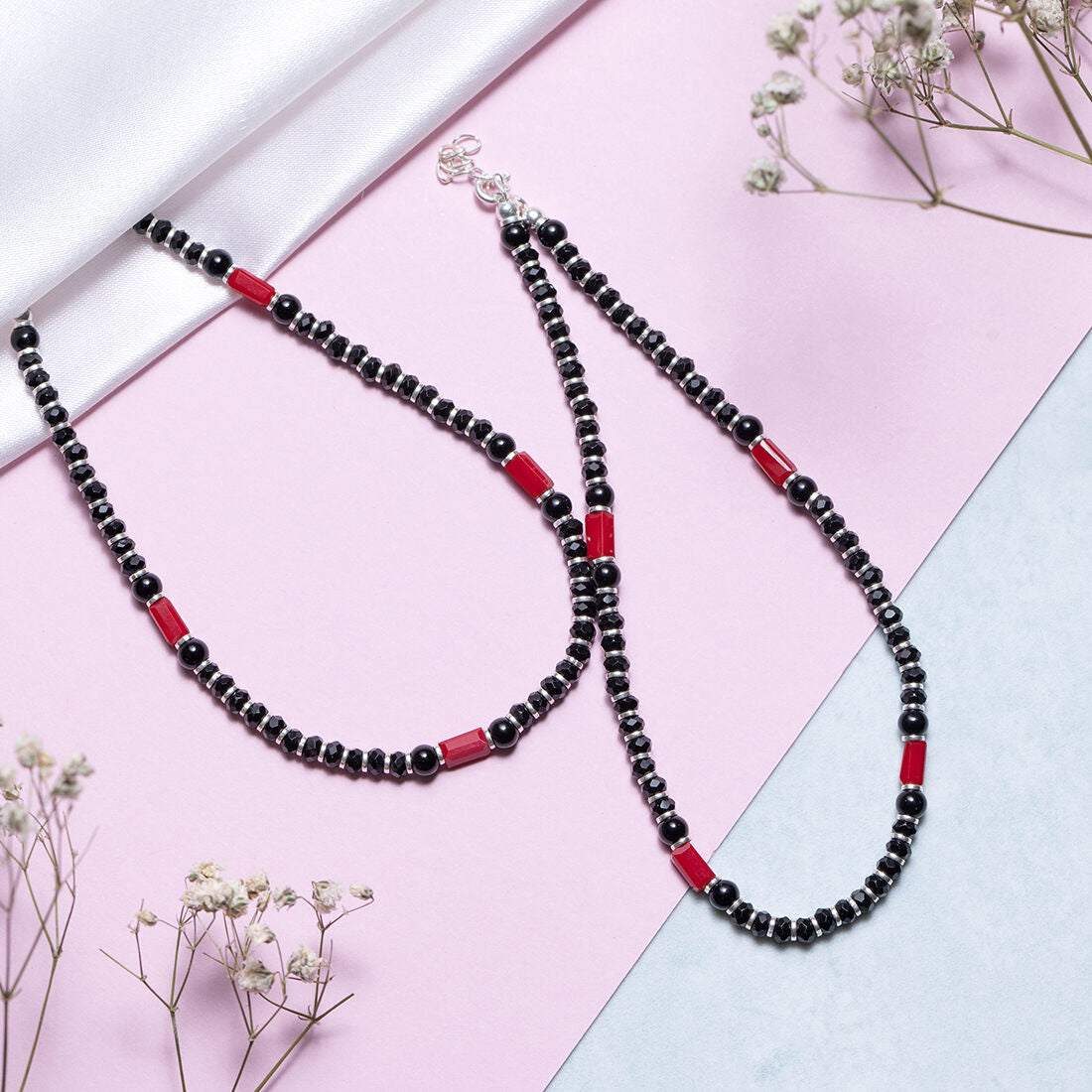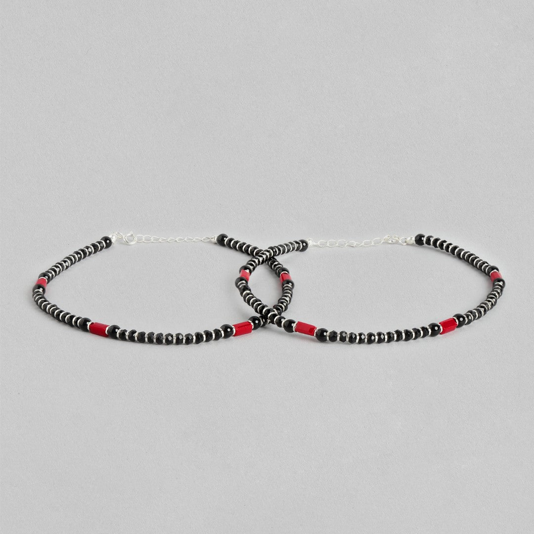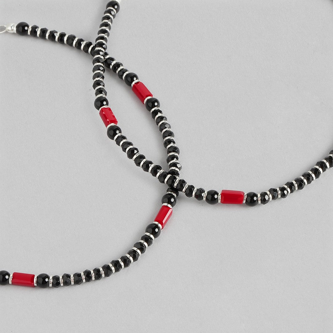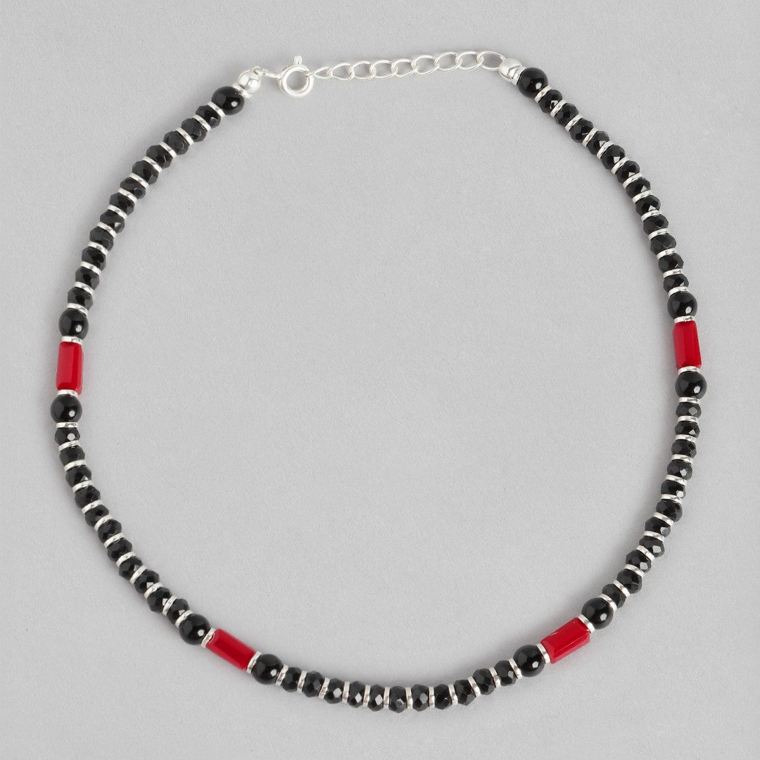 Product Description:- Add a touch of passionate elegance to your style with our 925 sterling silver anklet. Featuring vibrant red and sleek black beads, this anklet exudes a captivating charm. The rhodium plating enhances the silver's radiance, while the contrasting gemstone colors of red and black create a bold statement. Embrace the allure of this unique anklet and let it be a symbol of your passionate elegance.