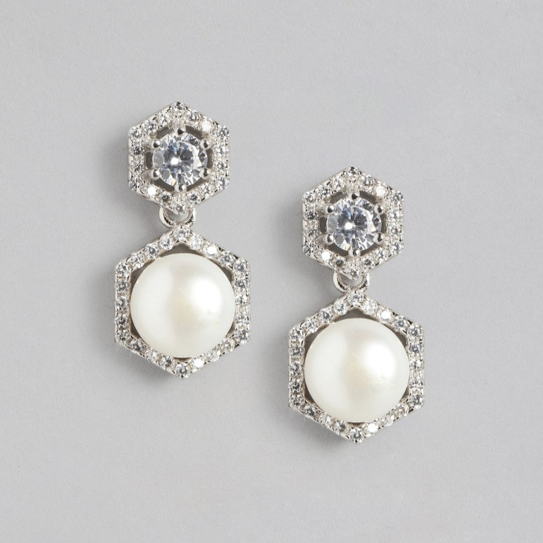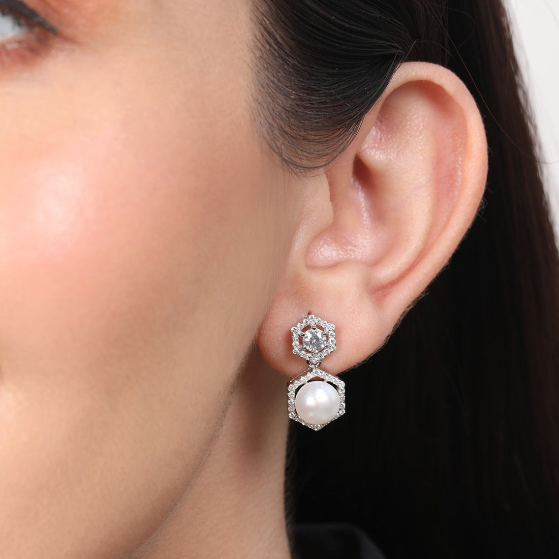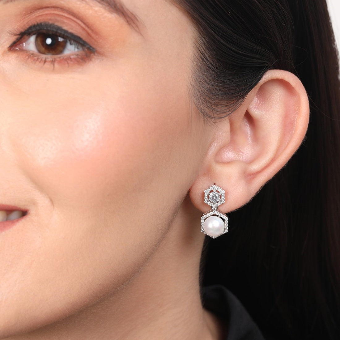 Product Description:- Elevate your elegance with our Pearl Elegance Radiance Earrings. Meticulously crafted from high-quality 925 Sterling Silver and plated with enduring rhodium, these earrings showcase a stunning combination of Cubic Zirconia brilliance and the timeless allure of freshwater pearls. The result is a harmonious blend of sophistication and natural beauty, making these earrings a captivating addition to your jewelry collection.