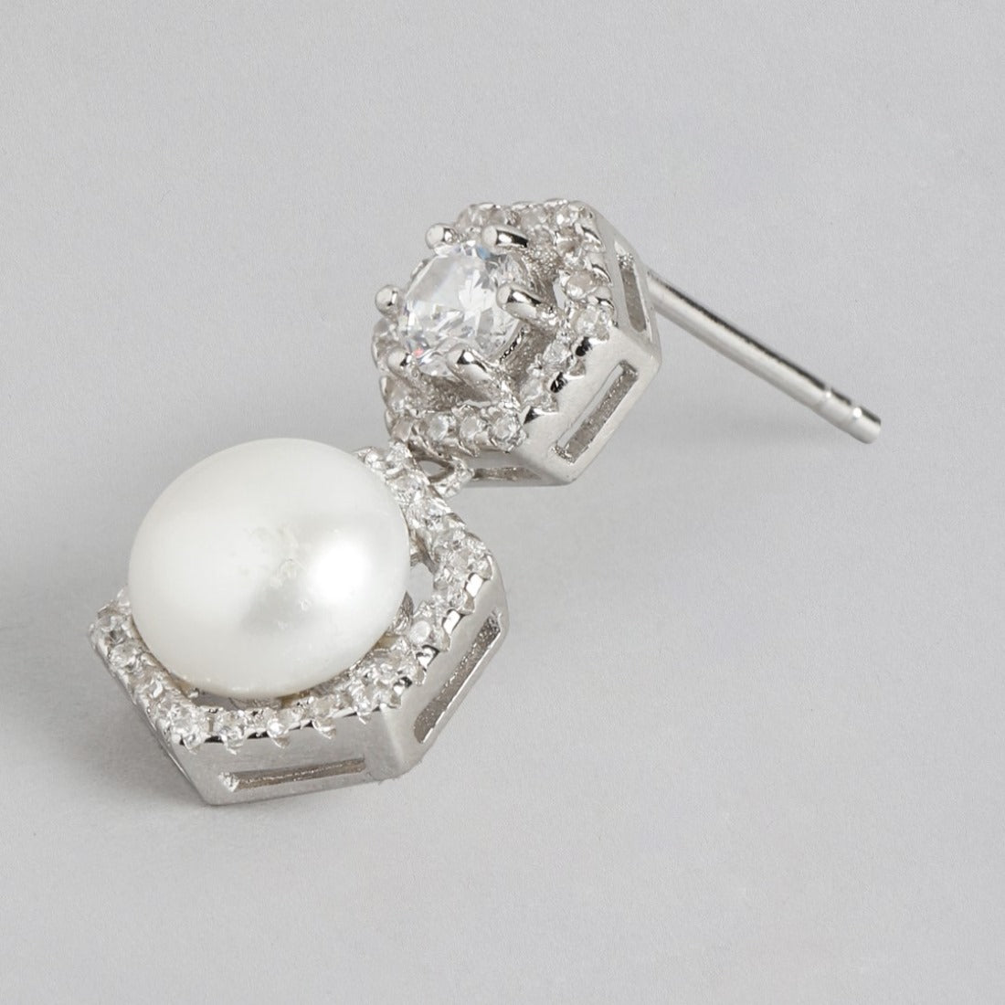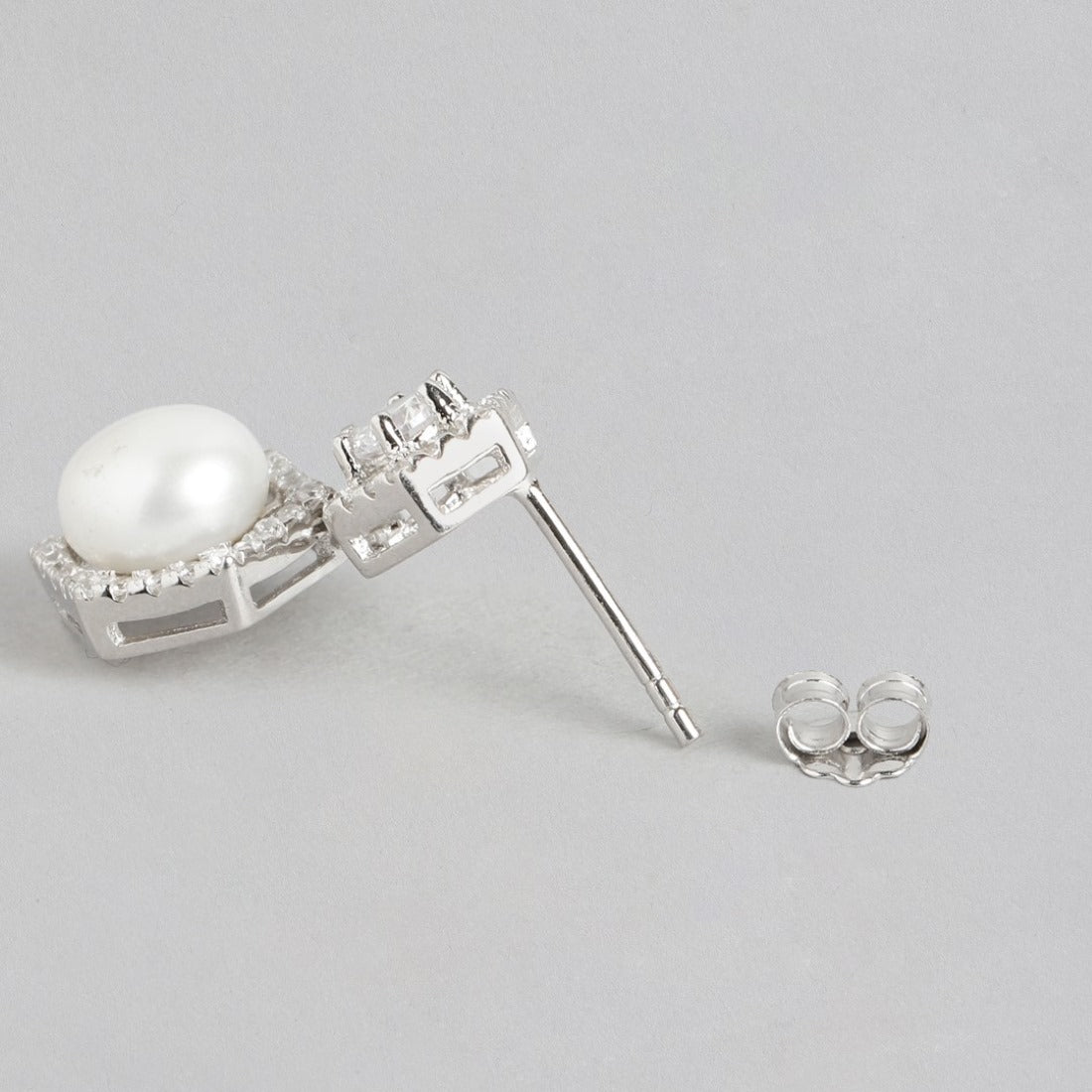 Pearl Elegance Radiance Rhodium-Plated 925 Sterling Silver Earrings