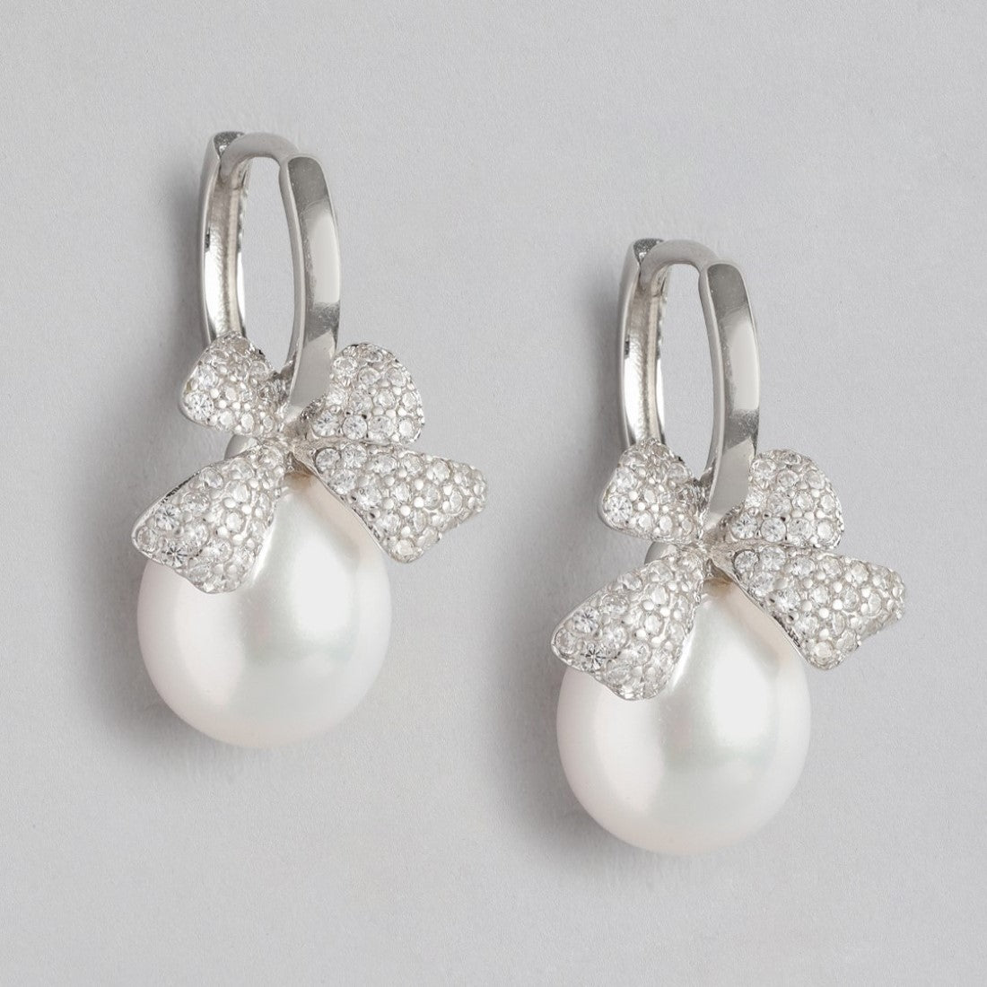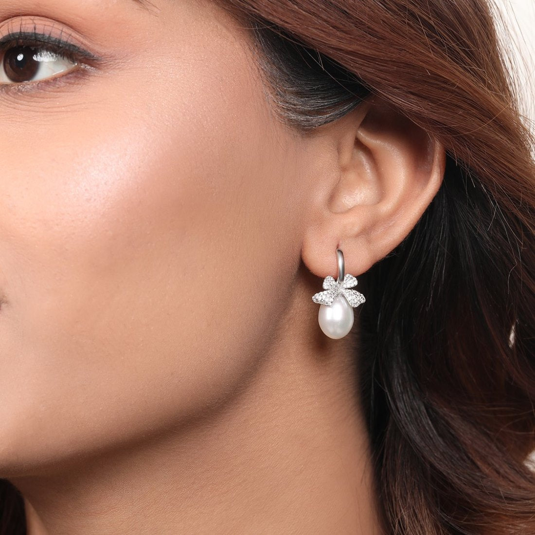Product Description:- Drape yourself in nature-inspired elegance with our Pearl Leaf Whispers Earrings. Crafted from high-quality 925 Sterling Silver and plated with enduring rhodium, these earrings feature a delicate leaf pattern adorned with the shimmering brilliance of Cubic Zirconia and the timeless beauty of pearls. The result is a captivating accessory that seamlessly blends sophistication with natural allure, making it the perfect choice for adding a touch of glamour to any ensemble.