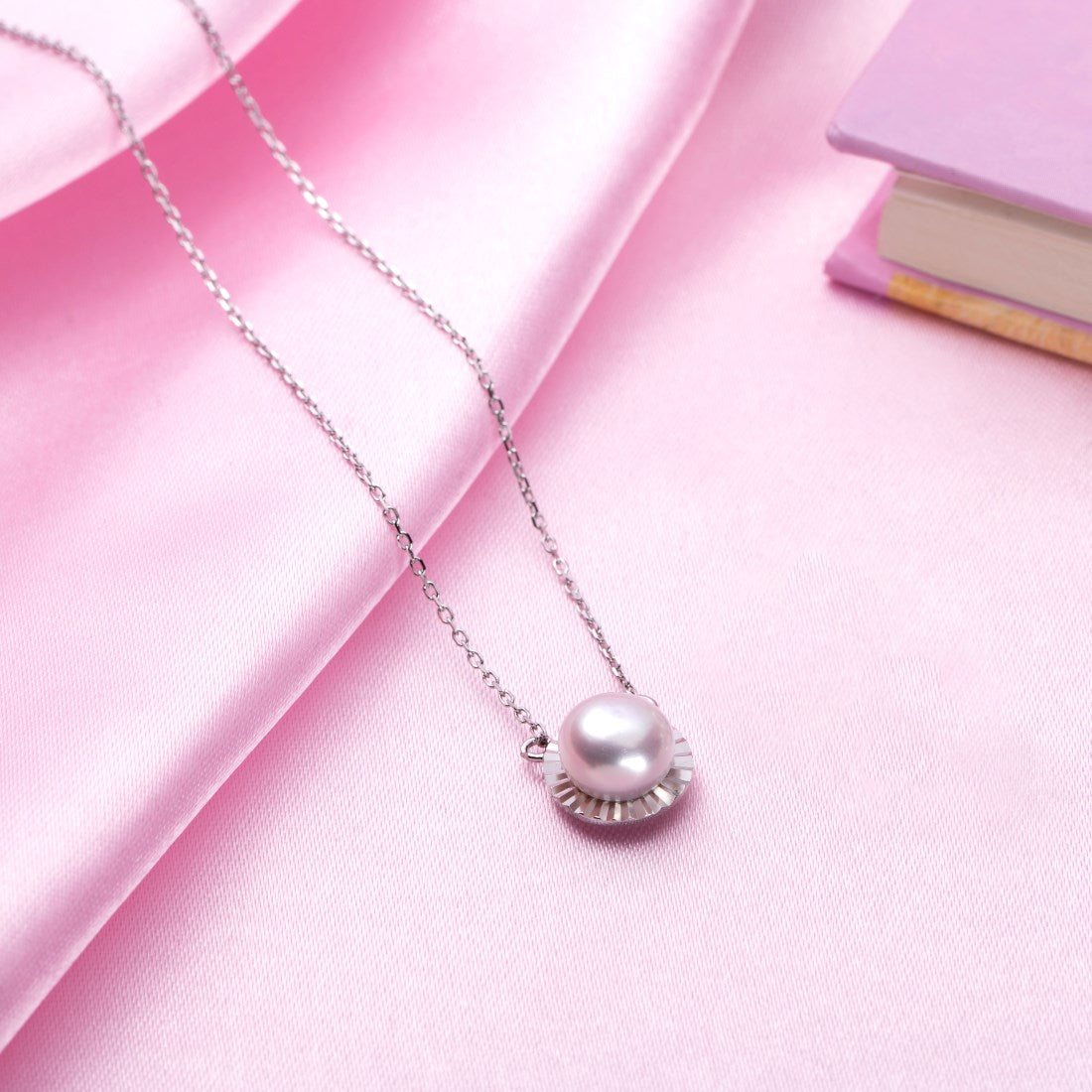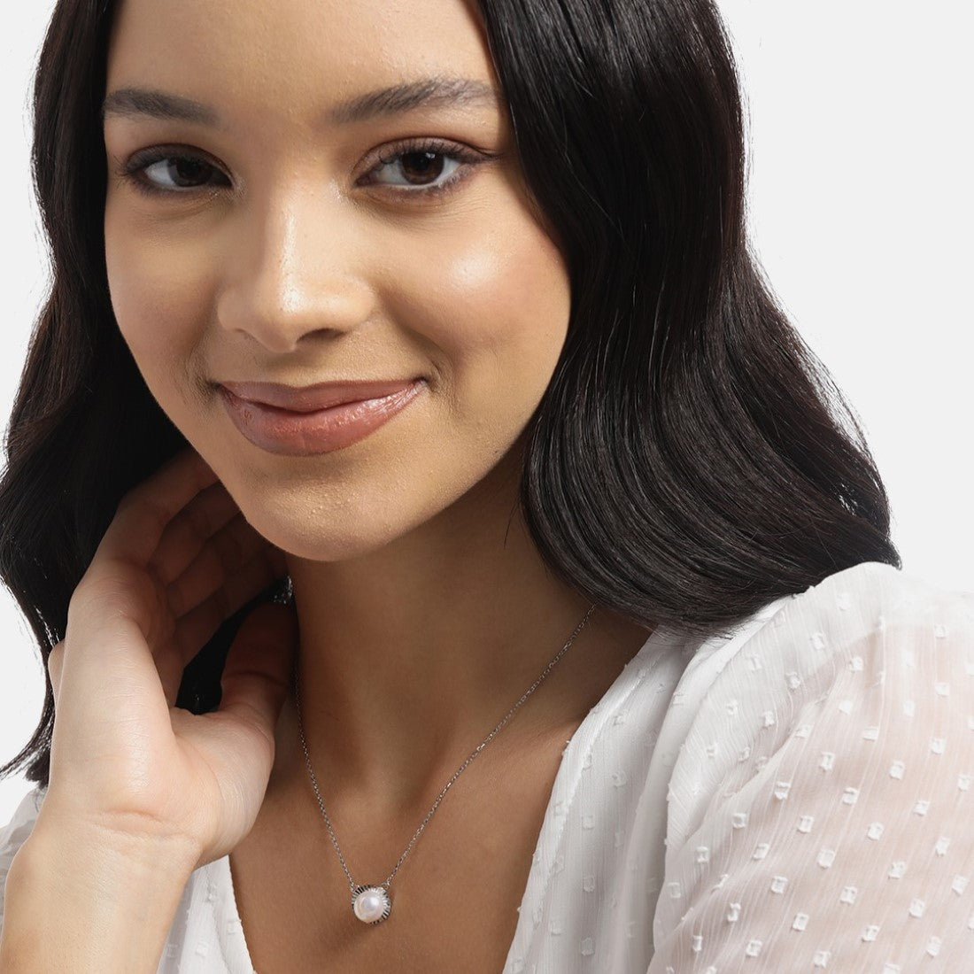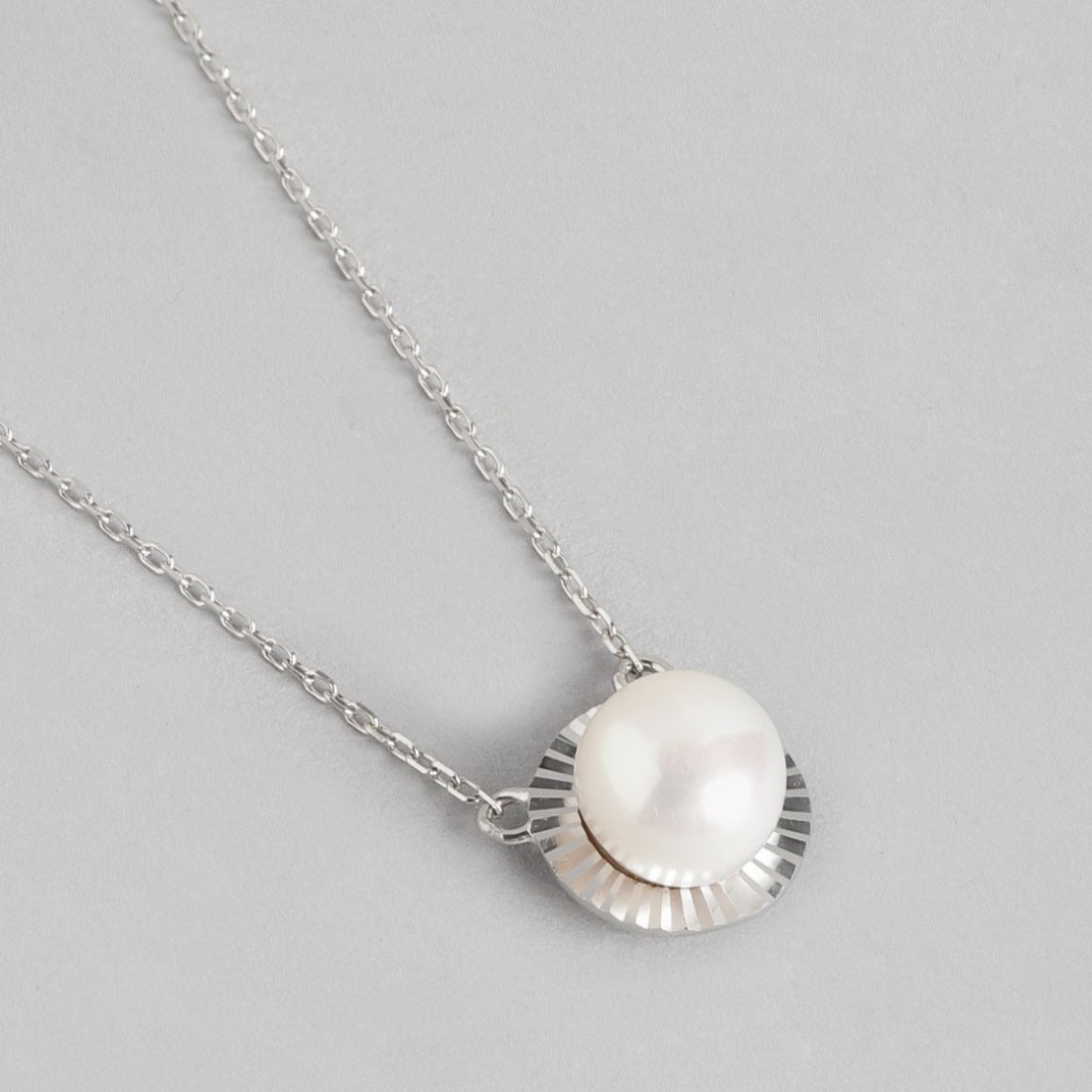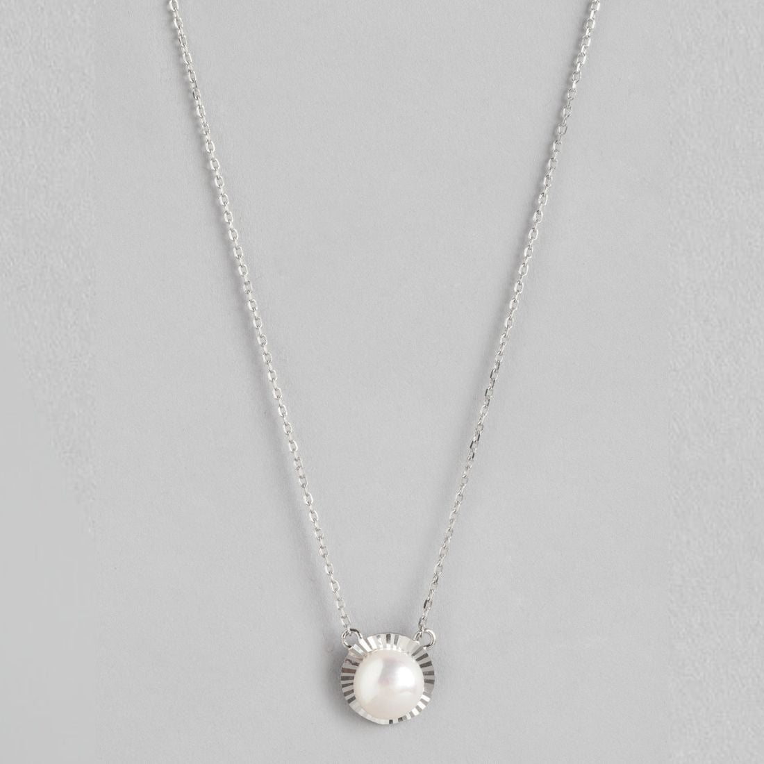 Product Description:- Elevate your elegance with the Pearl Petal Radiance Necklace. Crafted from high-quality 925 Sterling Silver and plated with enduring rhodium, this necklace features a delicate flower pattern adorned with the pure beauty of lustrous freshwater pearls. The result is a stunning piece that seamlessly blends sophistication with natural allure, making it the perfect choice for adding a touch of refined glamour to any occasion.