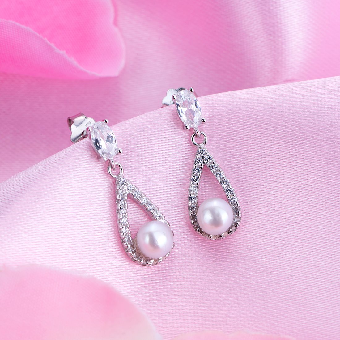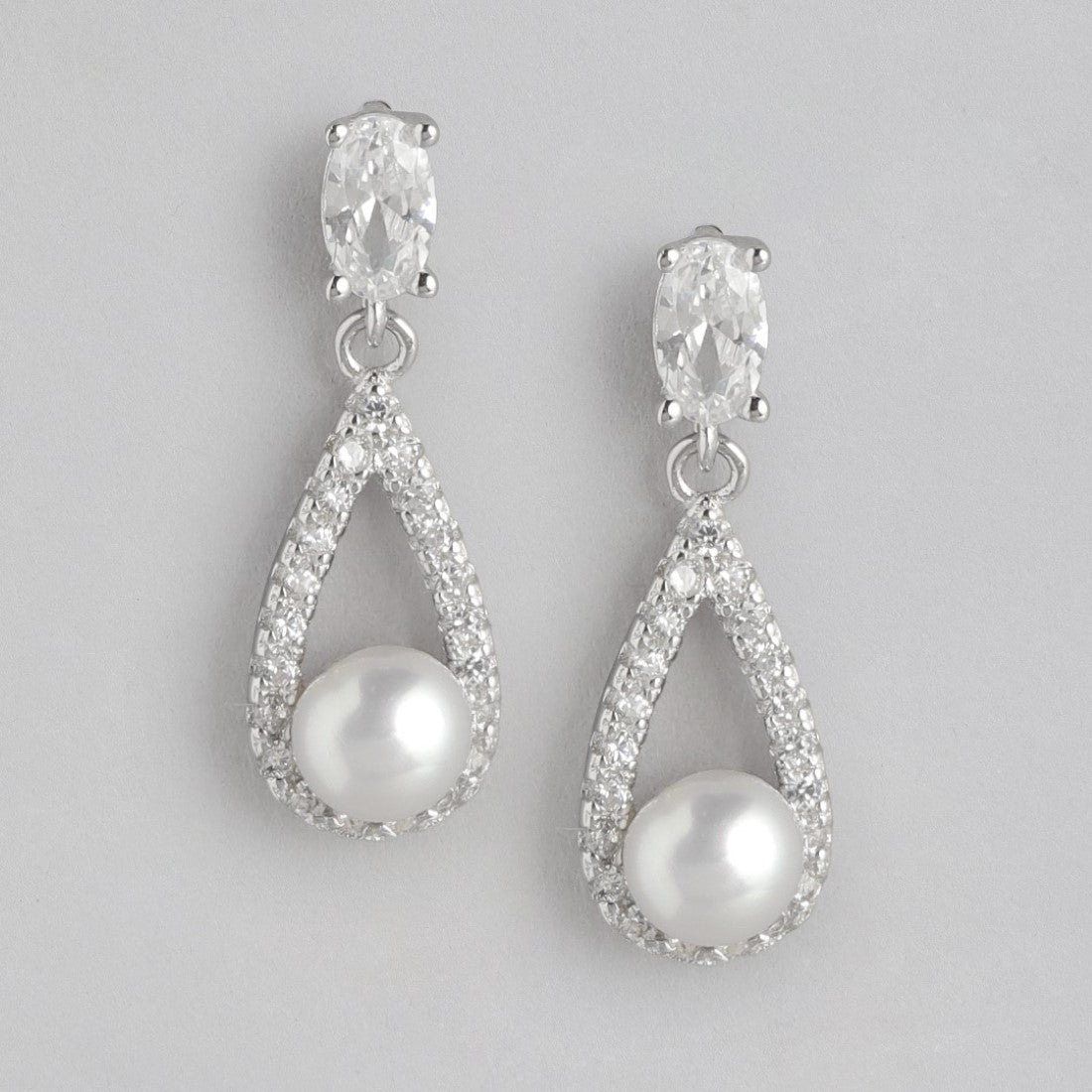 Product Description:- Adorn yourself in pure elegance with our Pearl Radiance Drops Earrings. Crafted from high-quality 925 Sterling Silver and plated with enduring rhodium, these drop earrings feature the enchanting combination of Cubic Zirconia brilliance and the timeless beauty of freshwater pearls. The result is a captivating accessory that effortlessly merges sophistication with natural allure, making it a perfect choice for any occasion.