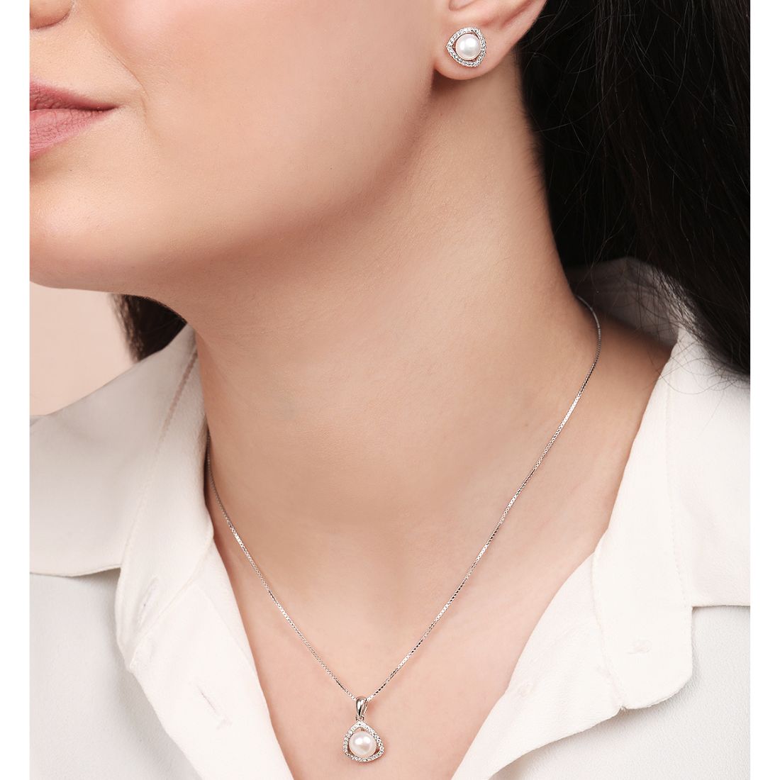 Product Description:- Elevate your elegance with our Pearl Radiance Harmony Jewelry Set. Meticulously crafted from high-quality 925 Sterling Silver and plated with enduring rhodium, this set features the pure beauty of lustrous freshwater pearls. The result is a stunning ensemble that seamlessly blends sophistication with natural allure, making it the perfect choice for adding a touch of refined glamour to any occasion.