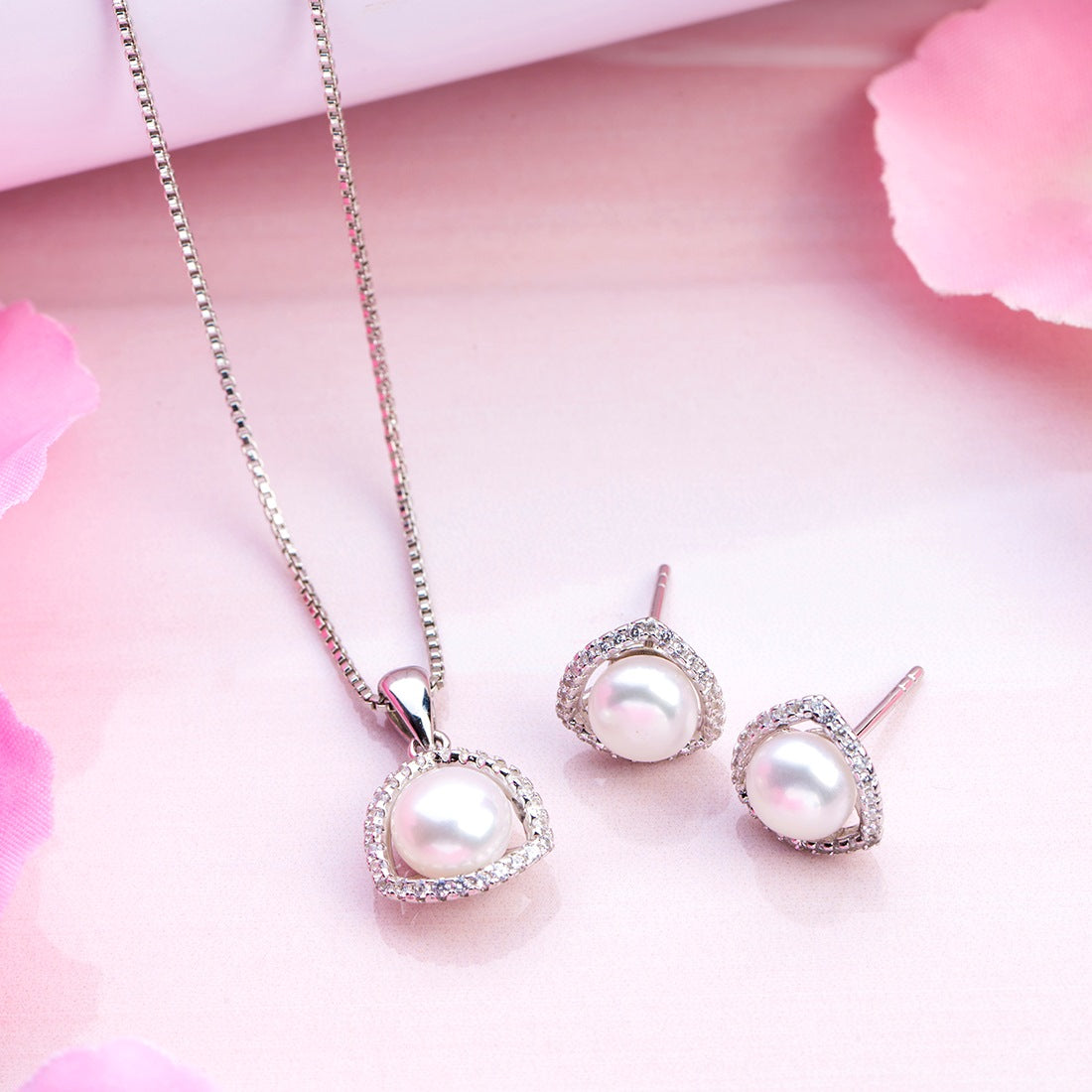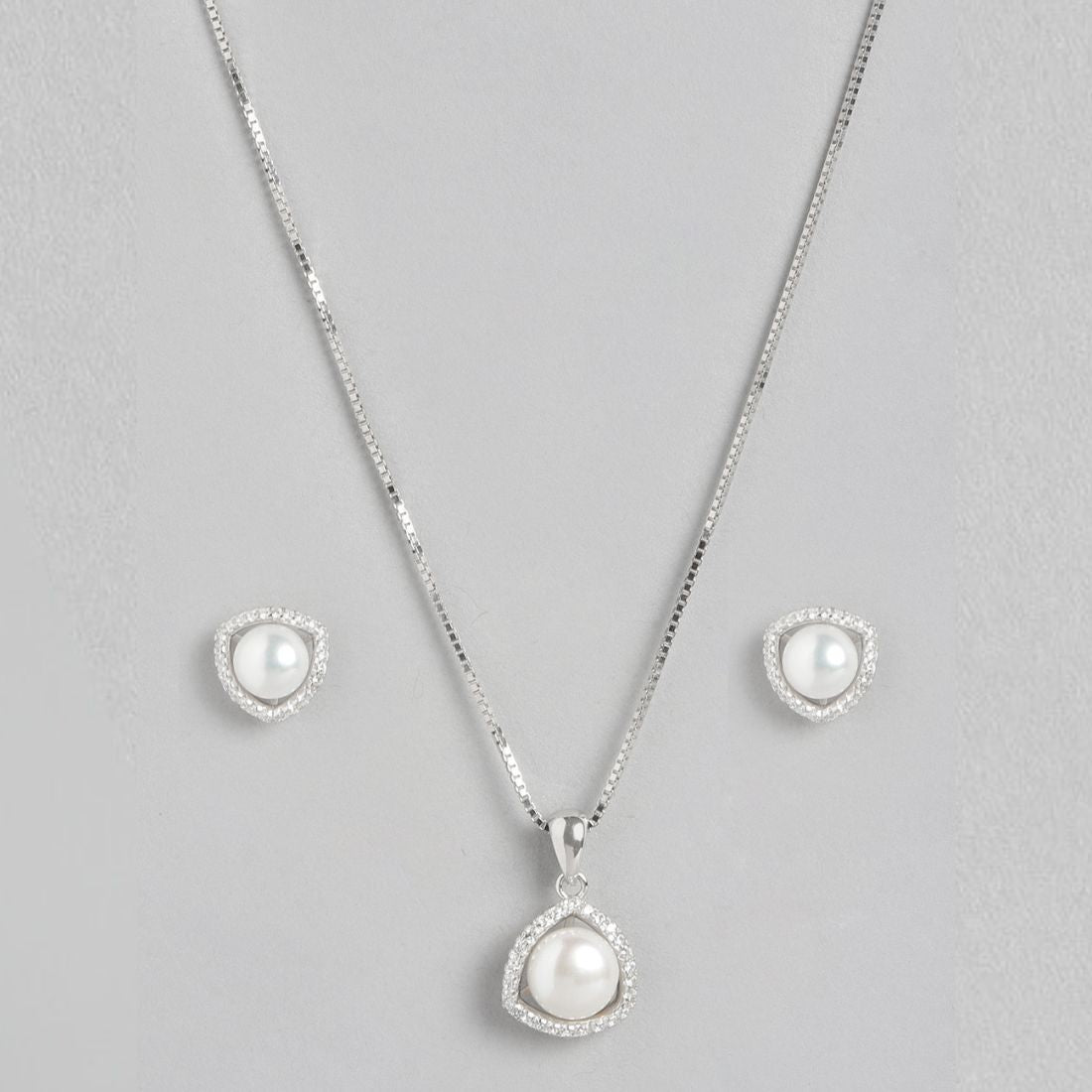 Pearl Radiance Harmony Rhodium-Plated 925 Sterling Silver Jewelry Set