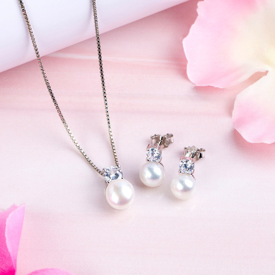 Pearl Radiance Harmony Rhodium-Plated 925 Sterling Silver Jewelry Set