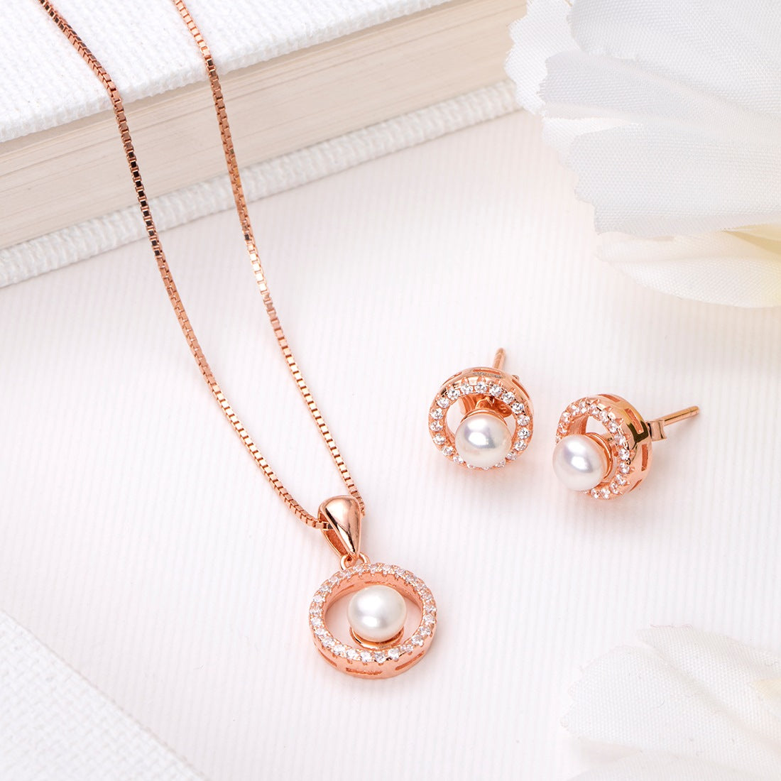 Pearl Radiance Rose gold 925 Sterling Silver Jewelry Set