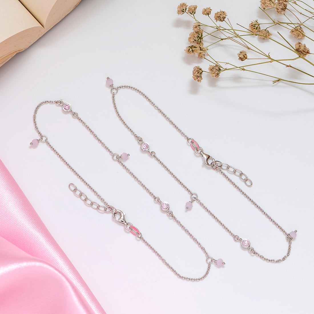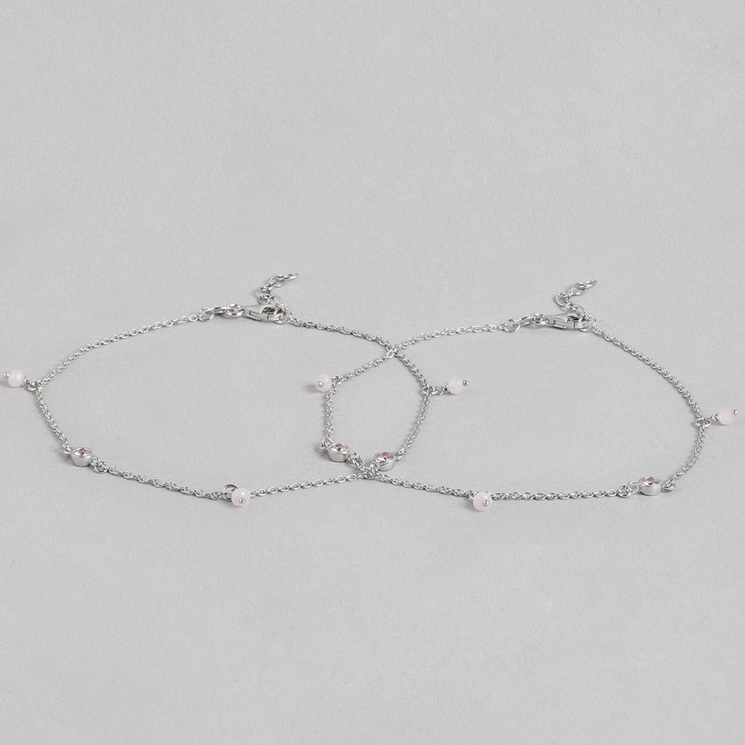 Pearl & Stone CZ 925 Sterling Silver Anklet
