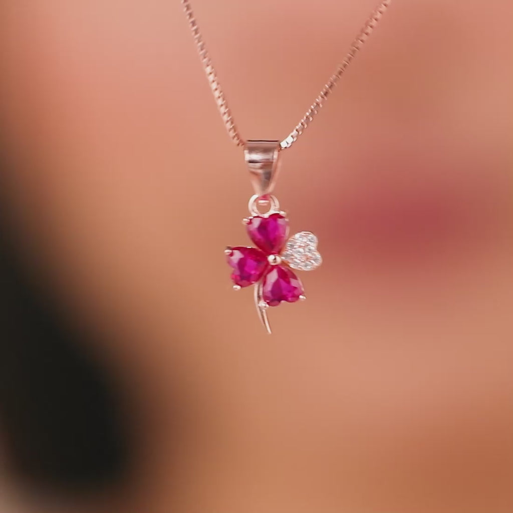 Rose-gold plated 925 silver pendant featuring a ruby-red heart CZ framed with delicate clear CZ accents.