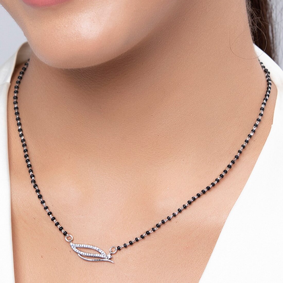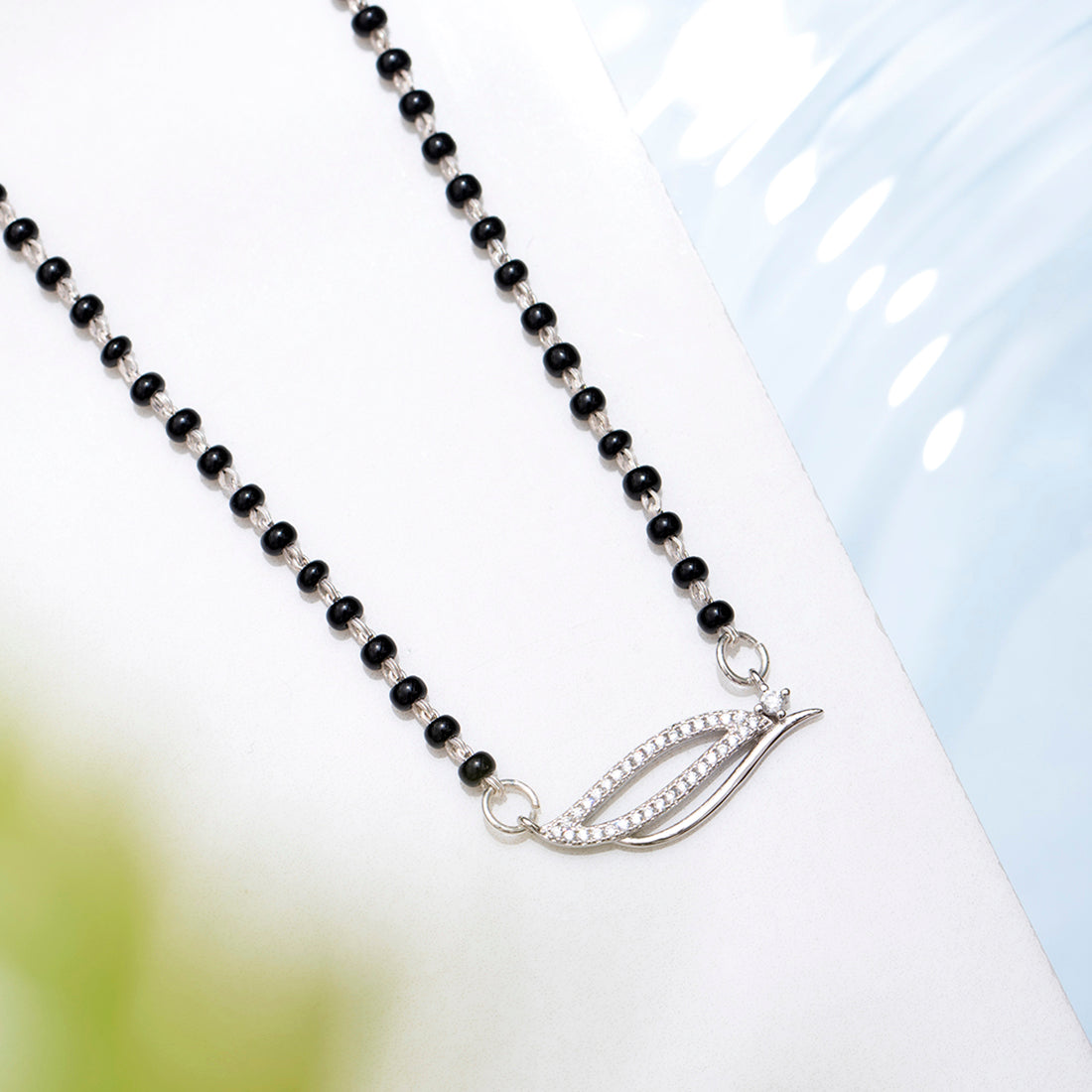 Product Description:- Zavya presents to you a sterling silver Mangalsutra with the petals look as the centerpiece. The embellishments up the beauty of the symbol, reminding you that anything is possible!!