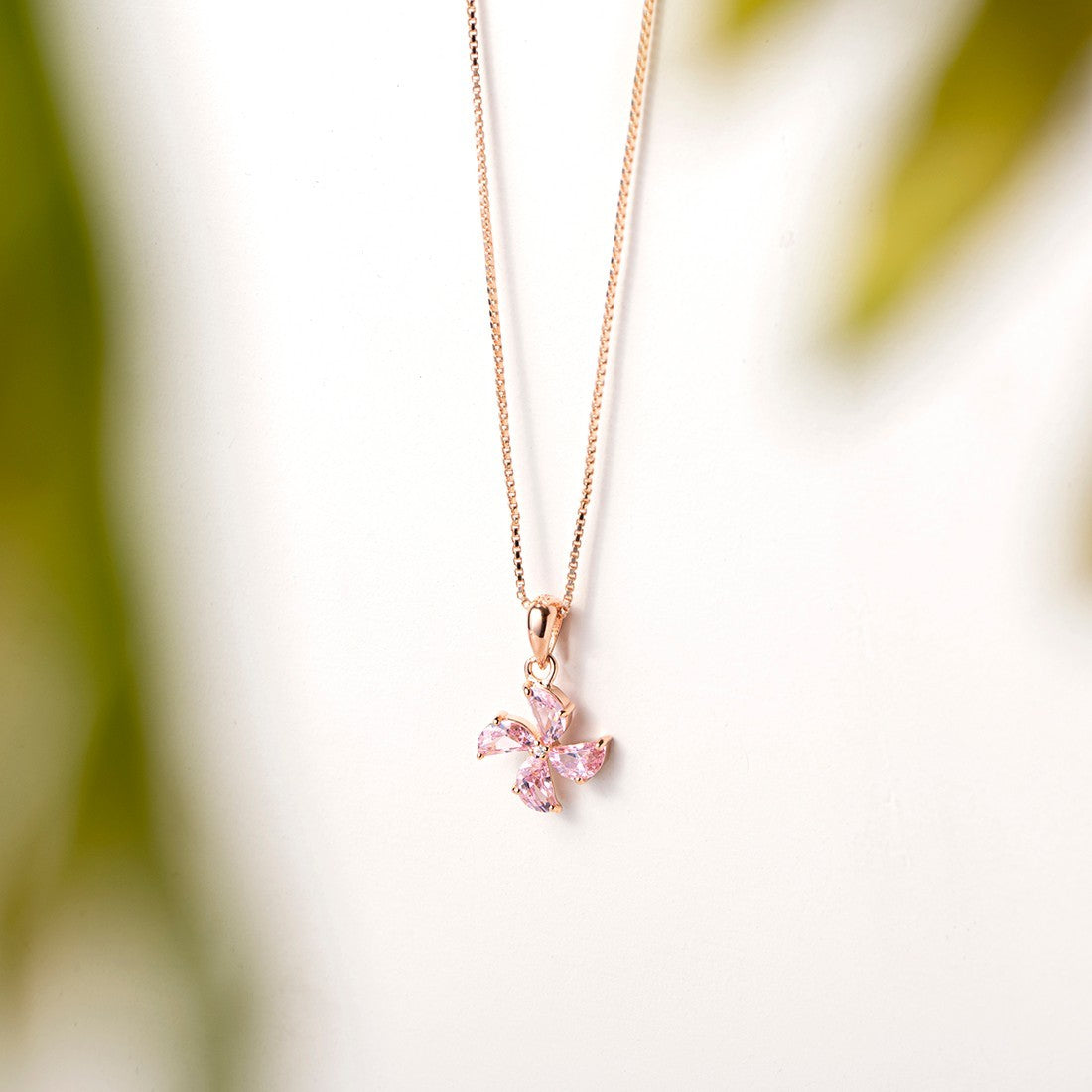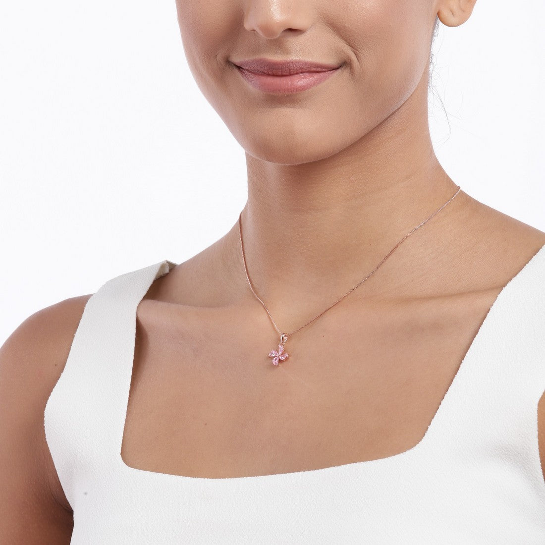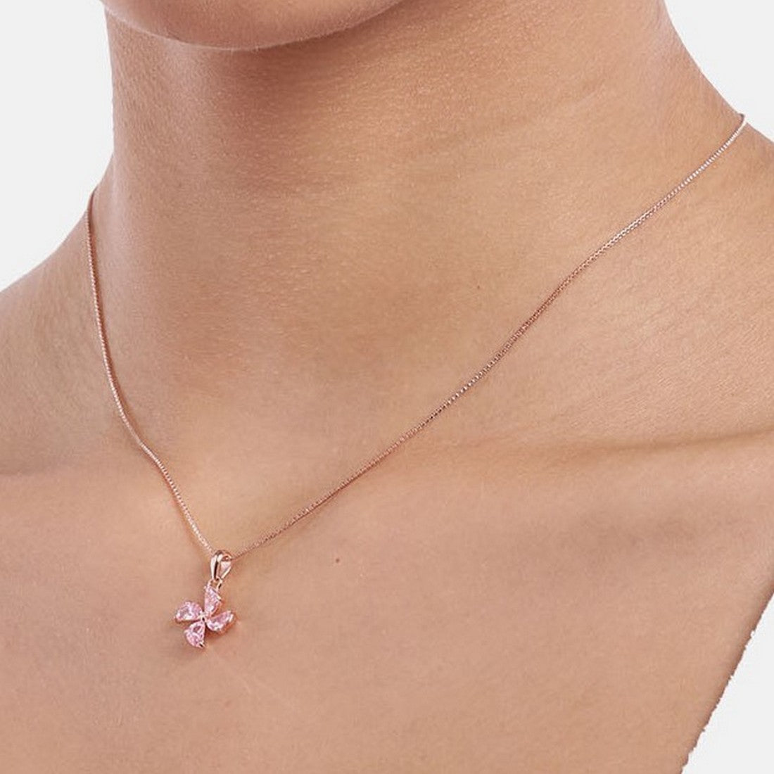 Pink Clover 925 Sterling Silver Pendant with Chain