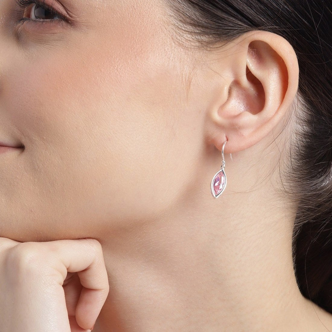 Product Description:- Dazzle in the delicate allure of our Pink Petal Radiance Earrings. Crafted from high-quality 925 sterling silver and rhodium-plated for lasting shine, these drop earrings feature exquisite pink cubic zirconia stones. The graceful design captures the essence of blooming petals, adding a touch of elegance to any ensemble. Elevate your style with the enchanting sparkle and sophistication of these radiant earrings, a perfect choice for both casual and special occasions.