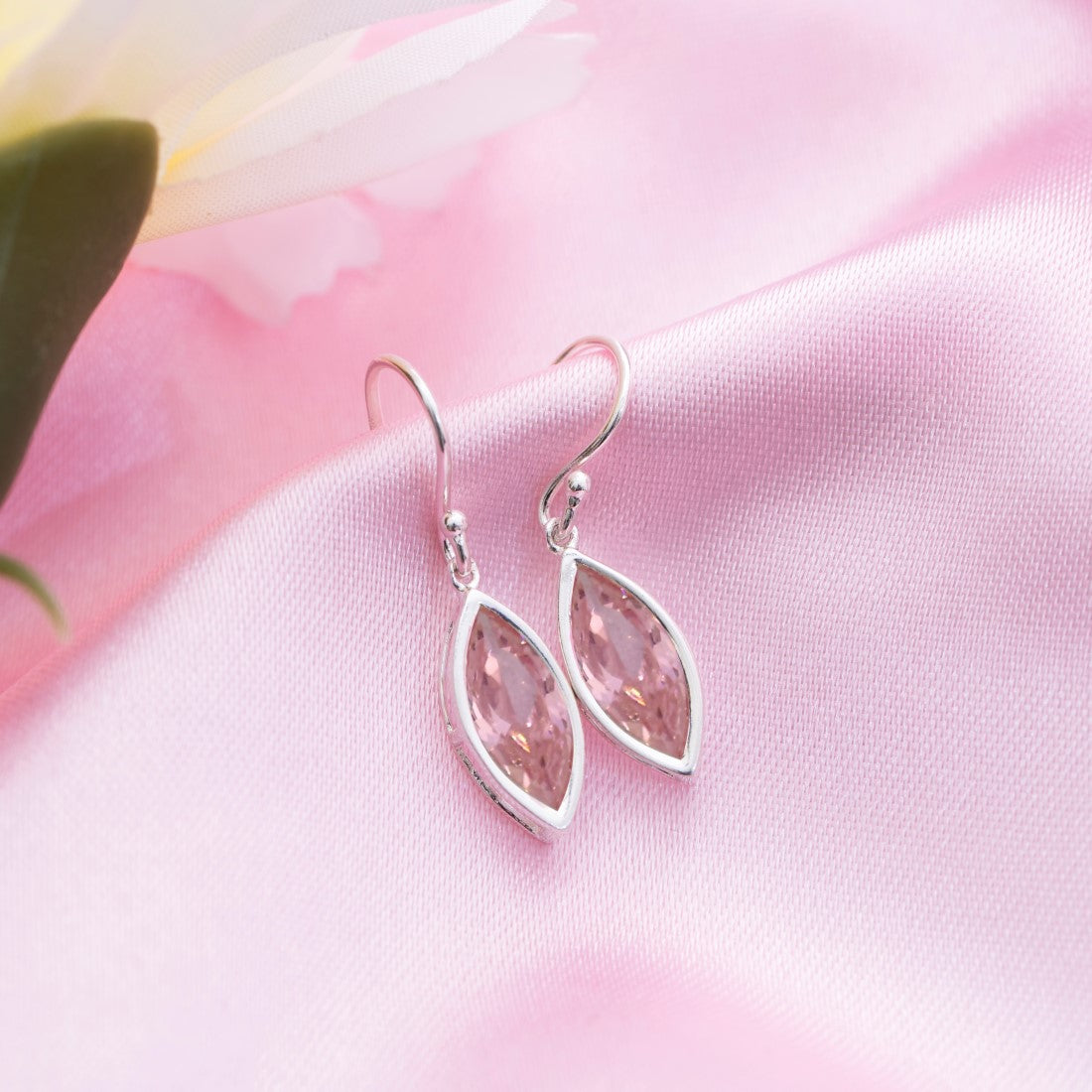 Pink Petal Radiance Rhodium Plated Pink CZ 925 Sterling Silver Drop Earrings