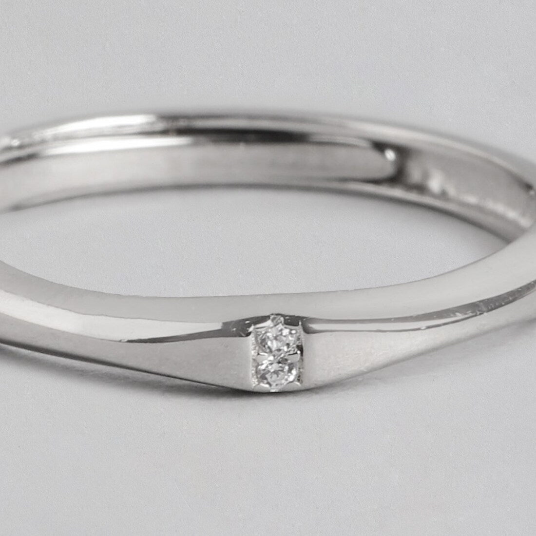 Pure Elegance Sterling Silver Rhodium-Plated Ring with Brilliant Cubic Zirconia (Adjustable)