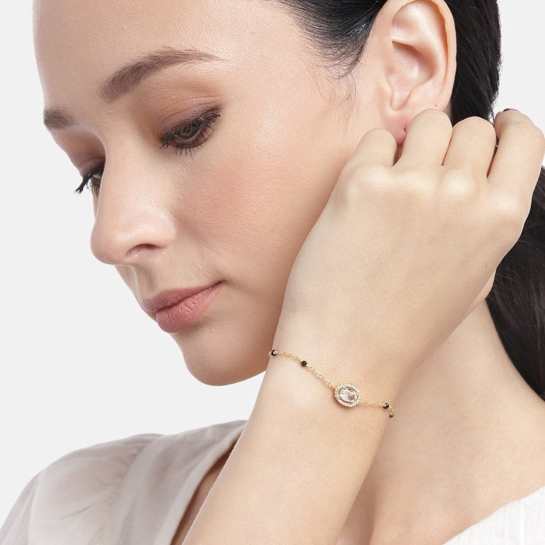 Product Description:- Elevate your elegance with the Radiant Adjustable Gold-Plated 925 Sterling Silver Cubic Zirconia Bracelet. Crafted to perfection, this exquisite piece features a glistening row of cubic zirconia stones, set in a lustrous gold-plated 925 sterling silver band. Its adjustable design ensures a perfect fit for any wrist size, while the timeless beauty of the cubic zirconia stones adds a touch of sophistication to any outfit. Whether it's a special occasion or everyday wear, this bracelet is sure to be your new favorite accessory, radiating elegance and charm wherever you go.