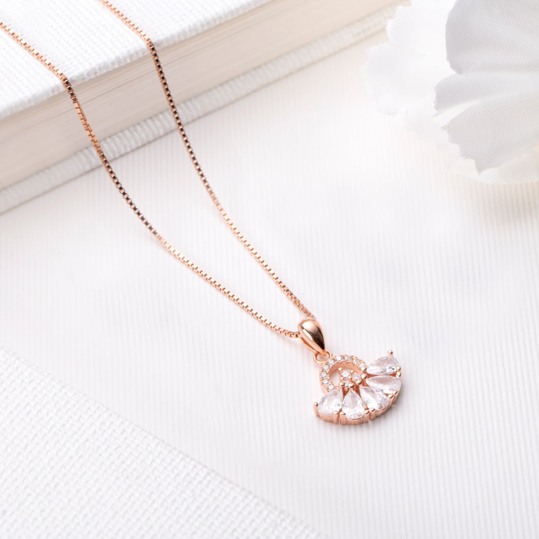 Radiant Bloom Rose Gold-Plated Cubic Zirconia 925 Sterling Silver Pendant with Chain