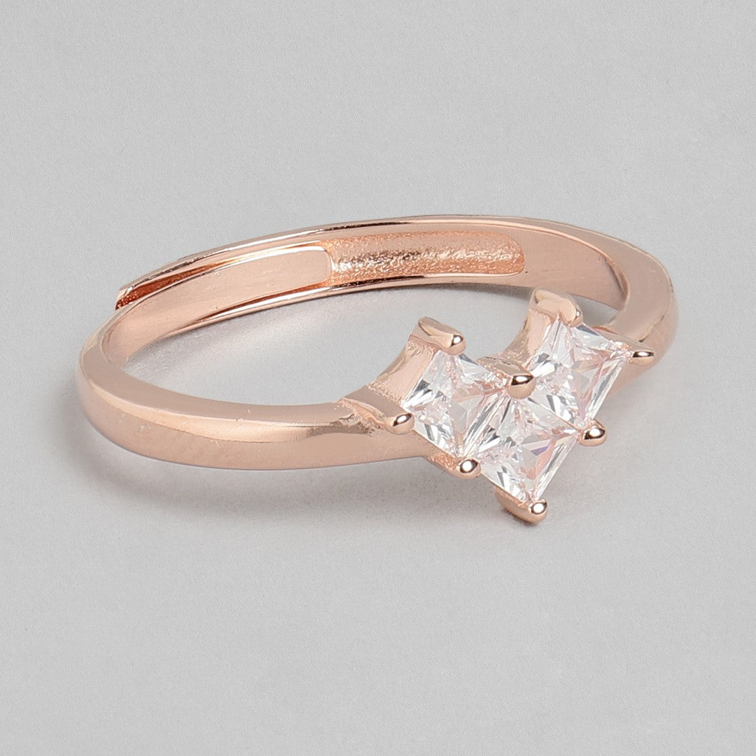 Product Description:- Add a touch of elegance and glamour to your look with the Radiant Blush Rose Gold-Plated 925 Sterling Silver Ring. Crafted with high-quality sterling silver and adorned with sparkling cubic zirconia stones, this ring is a true statement piece. The rose gold plating adds a warm and sophisticated touch, making it a perfect choice for any occasion. With its timeless design and impeccable craftsmanship, this ring is sure to turn heads and make you feel confident and beautiful.