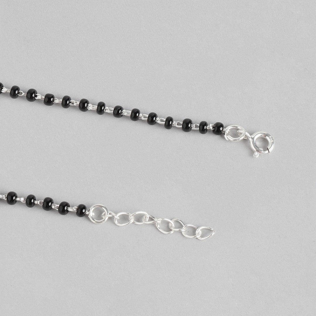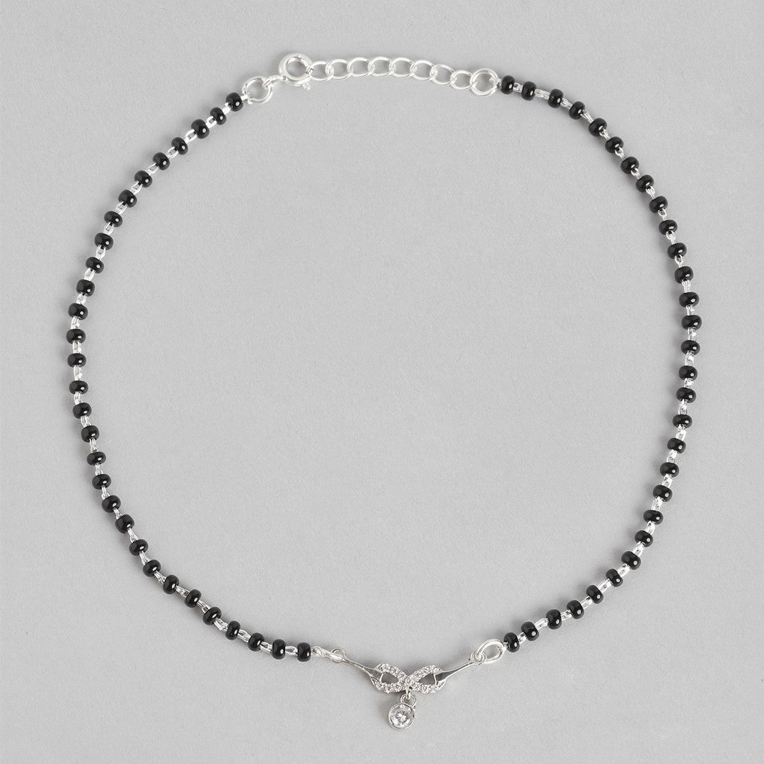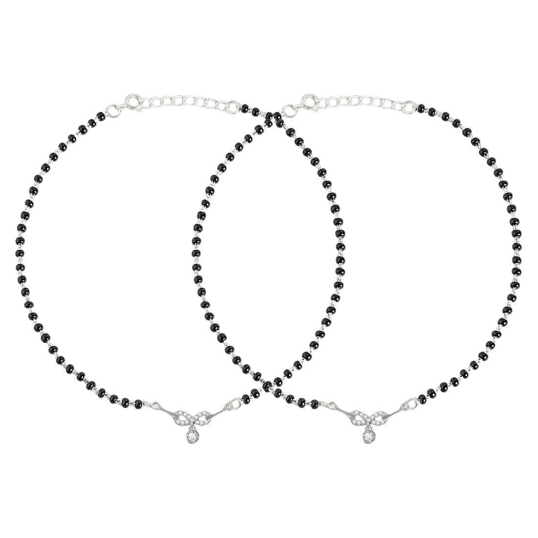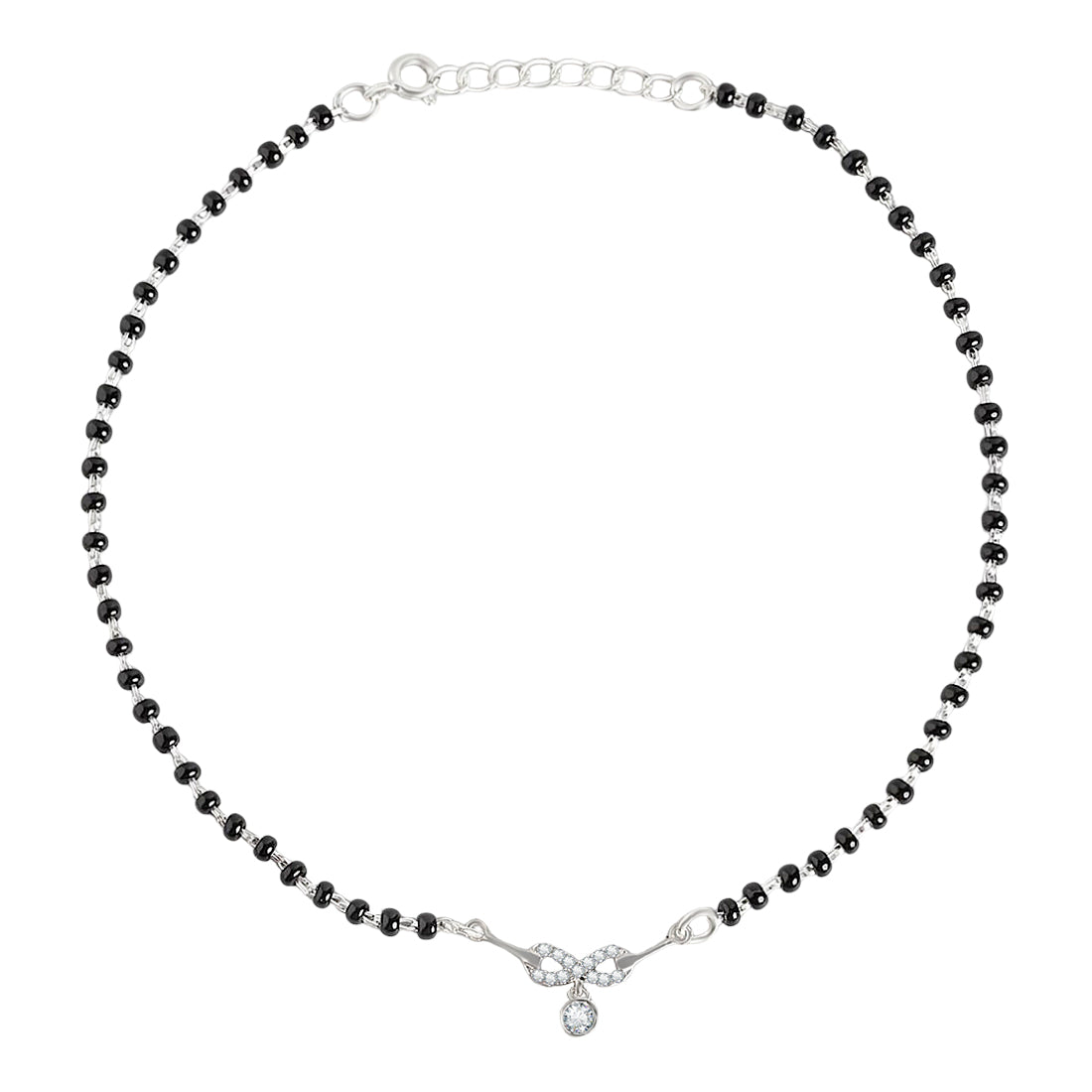 Radiant Charm Rhodium-Plated 925 Sterling Silver Anklet with Beaded Chain