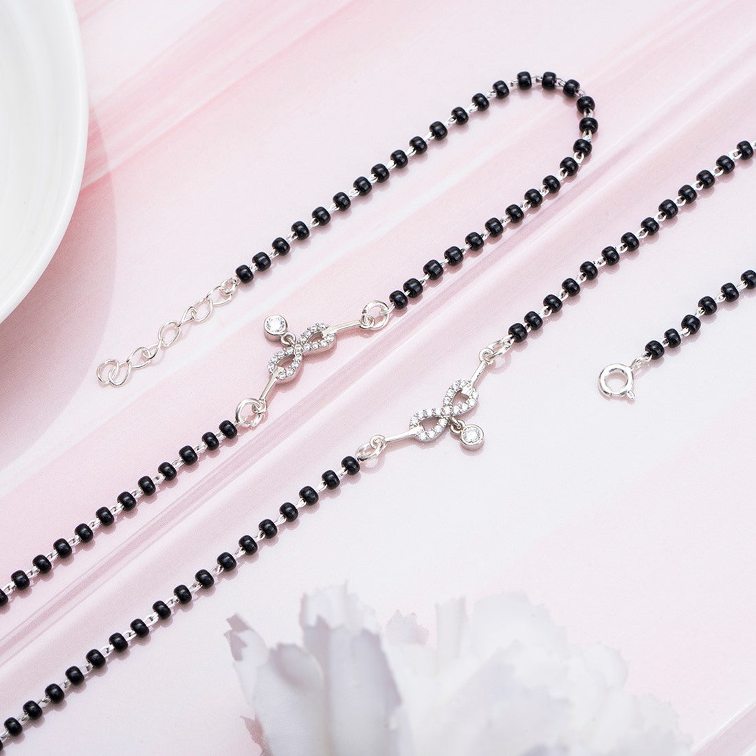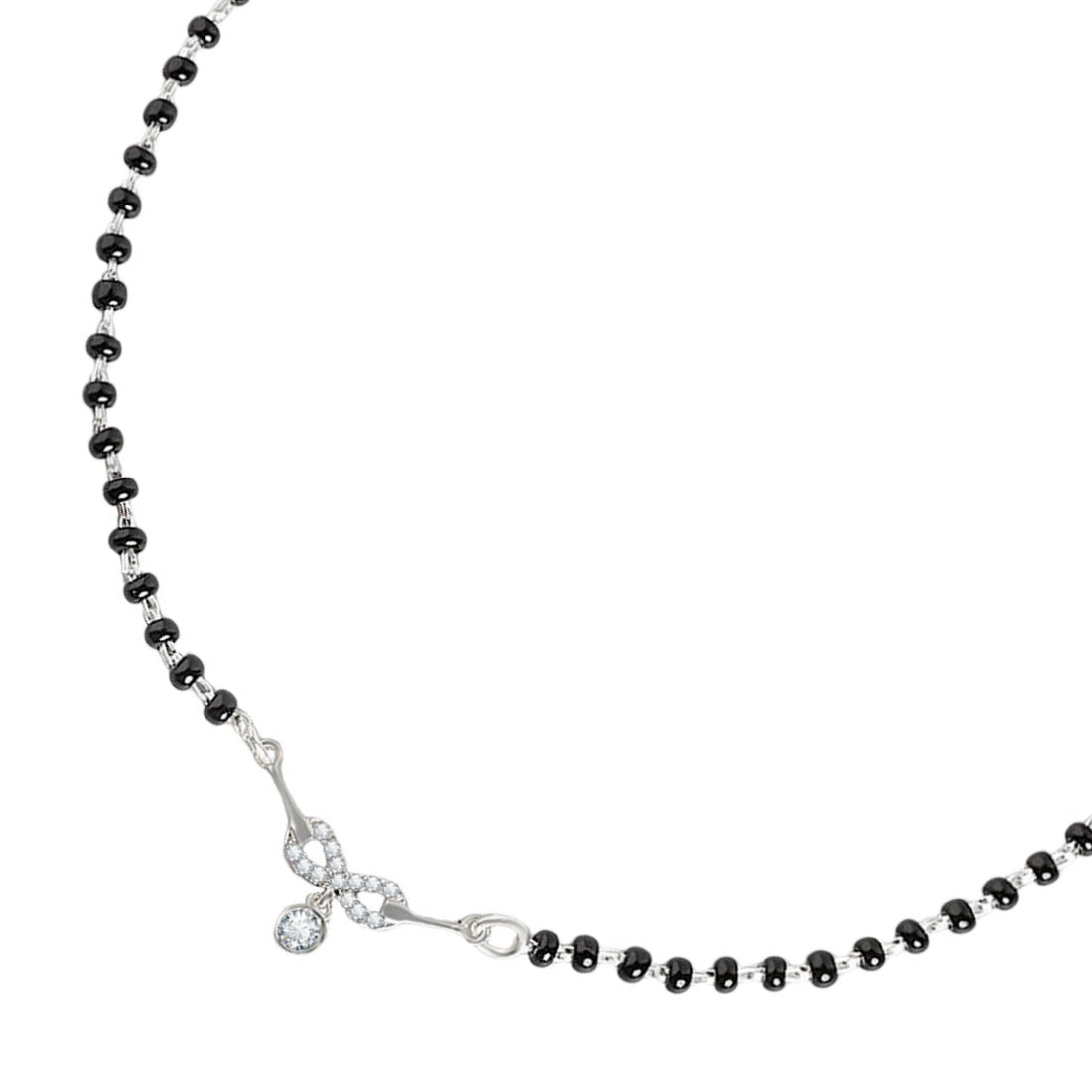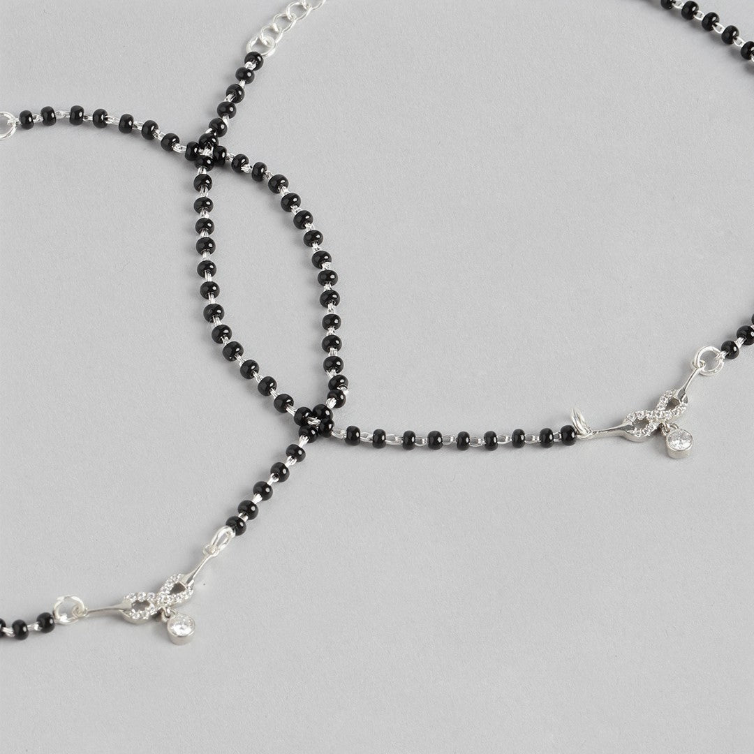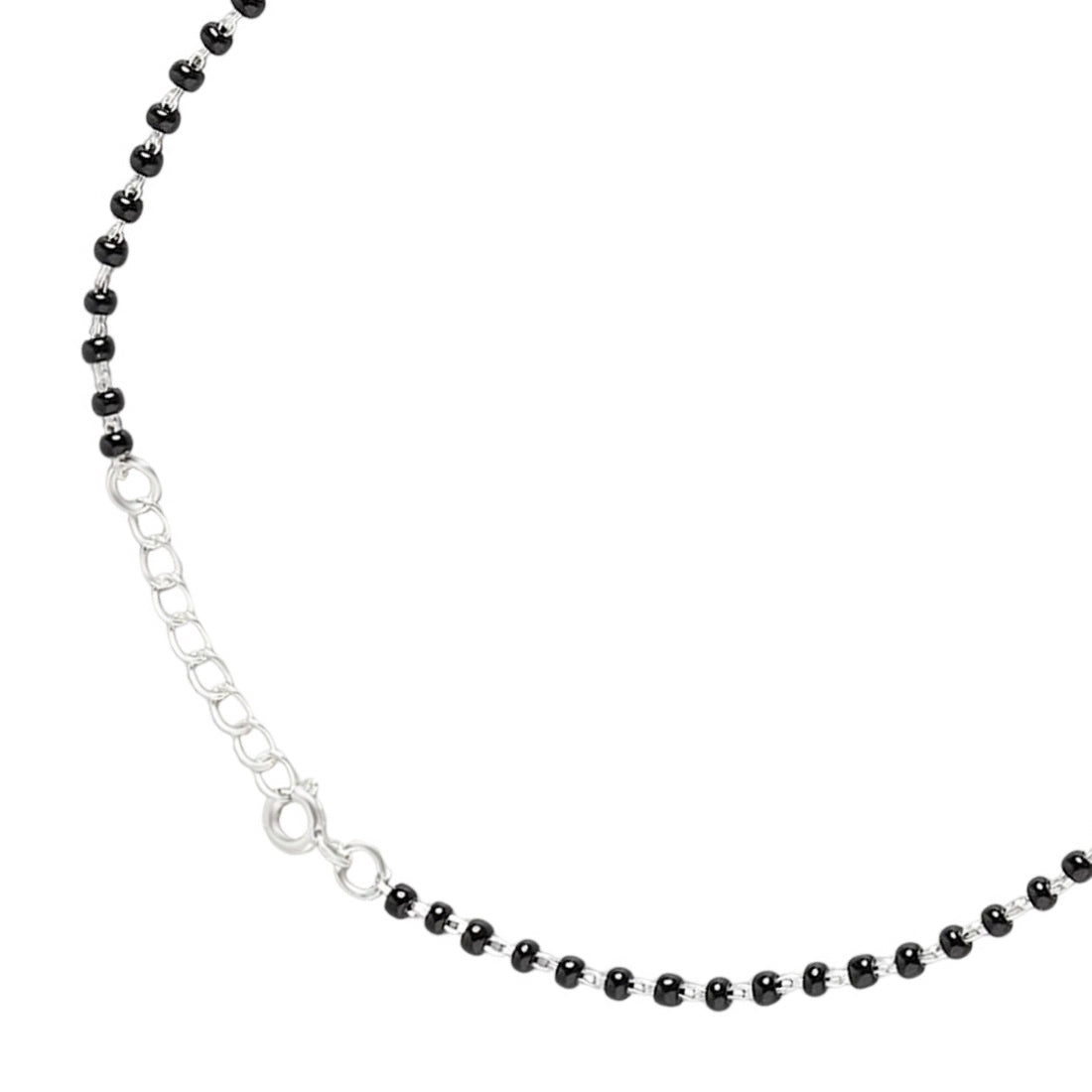 Radiant Charm Rhodium-Plated 925 Sterling Silver Anklet with Beaded Chain