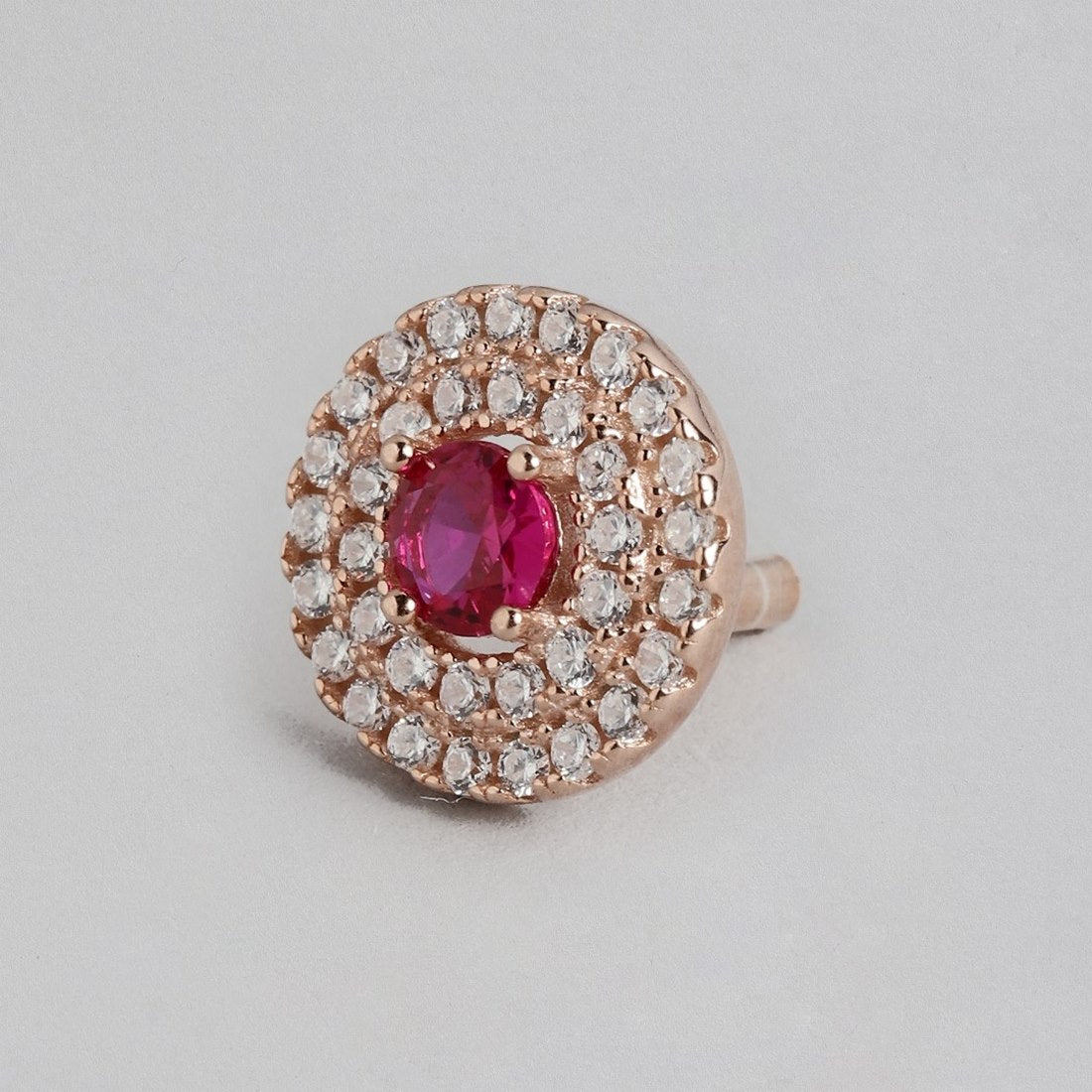 Radiant Crimson Circles Rose Gold-Plated Red CZ 925 Sterling Silver Jewelry Set