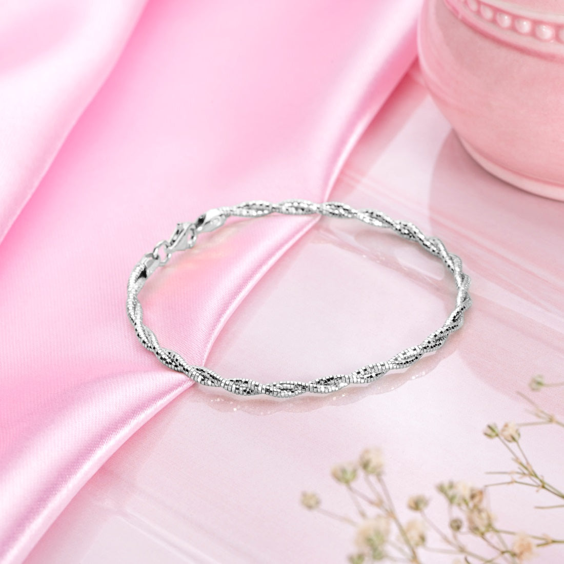 Product Description:- Elevate your wrist's allure with our 'Radiant Interlace' Rhodium-Plated 925 Sterling Silver Weave Bracelet. Crafted with meticulous attention to detail, this bracelet shines with a timeless charm. The high-quality sterling silver, finished in radiant rhodium, offers enduring brilliance. Its intricate weave pattern symbolizes unity and connection, making it an elegant statement piece. Whether worn casually or on special occasions, 'Radiant Interlace' adds a touch of sophistication and depth to your ensemble, exemplifying the artistry of design and craftsmanship.