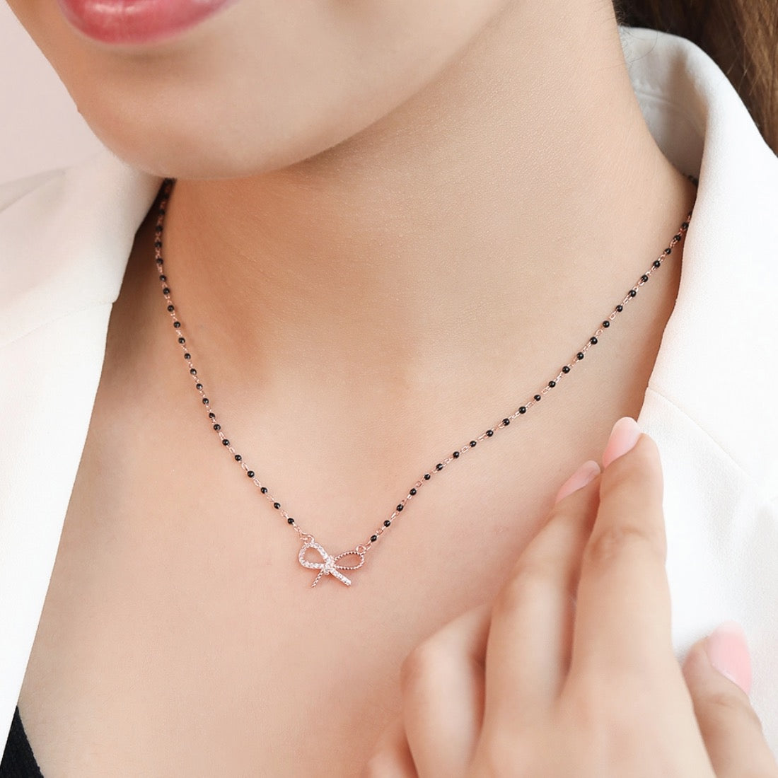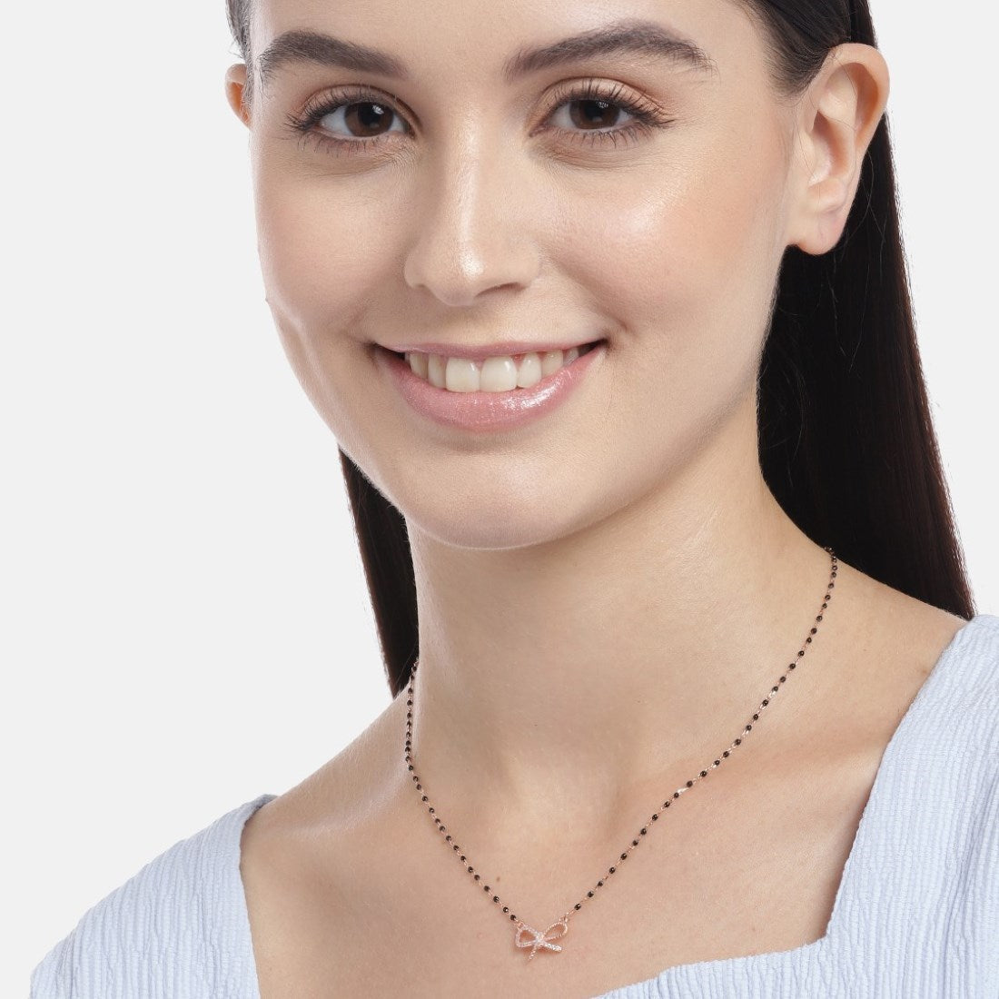 Radiant Rose-Gold Plated CZ Bow 925 Sterling Silver Mangalsutra