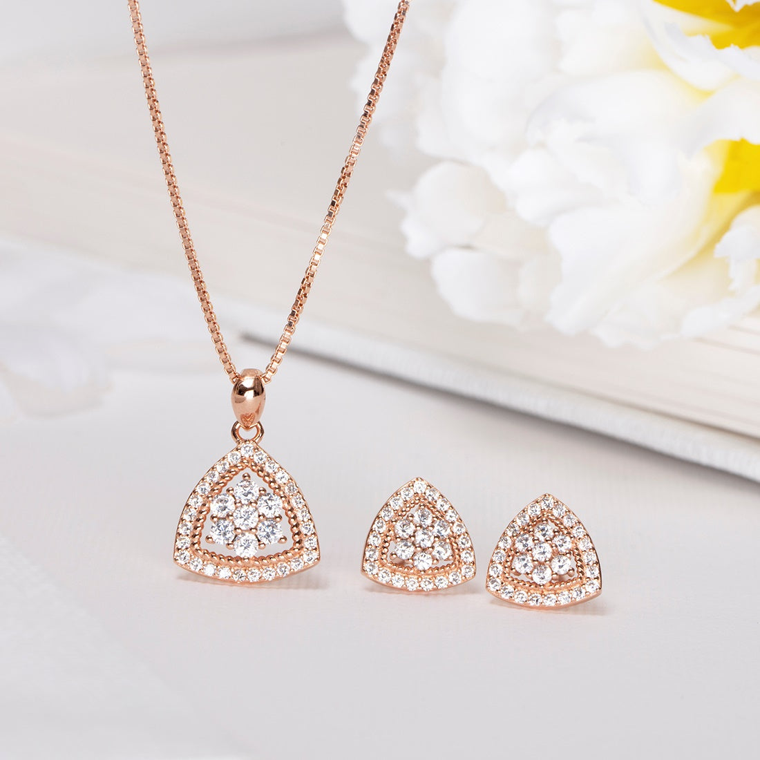 Radiant Triangle Rose-Gold Plated CZ 925 Sterling Silver Jewelry Set
