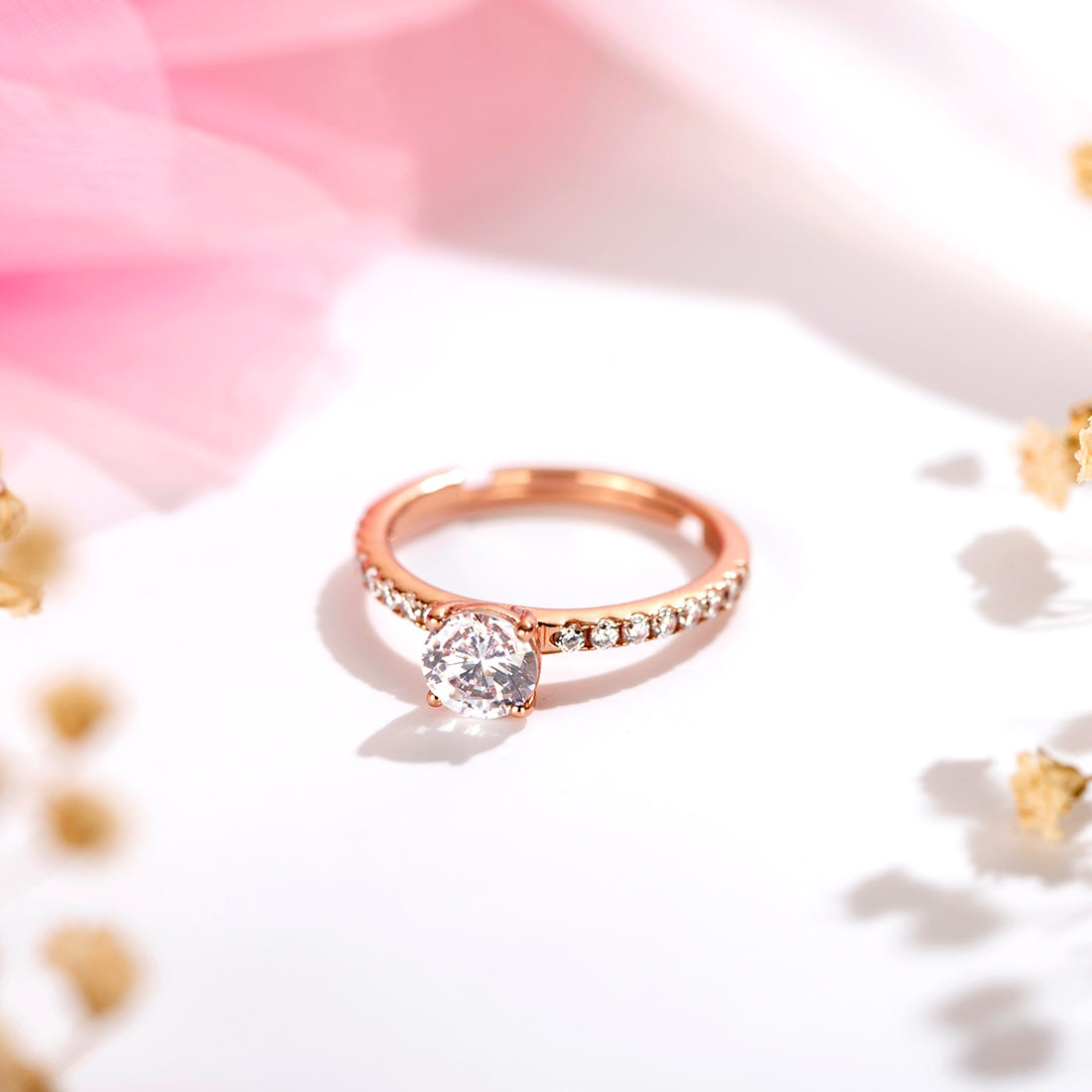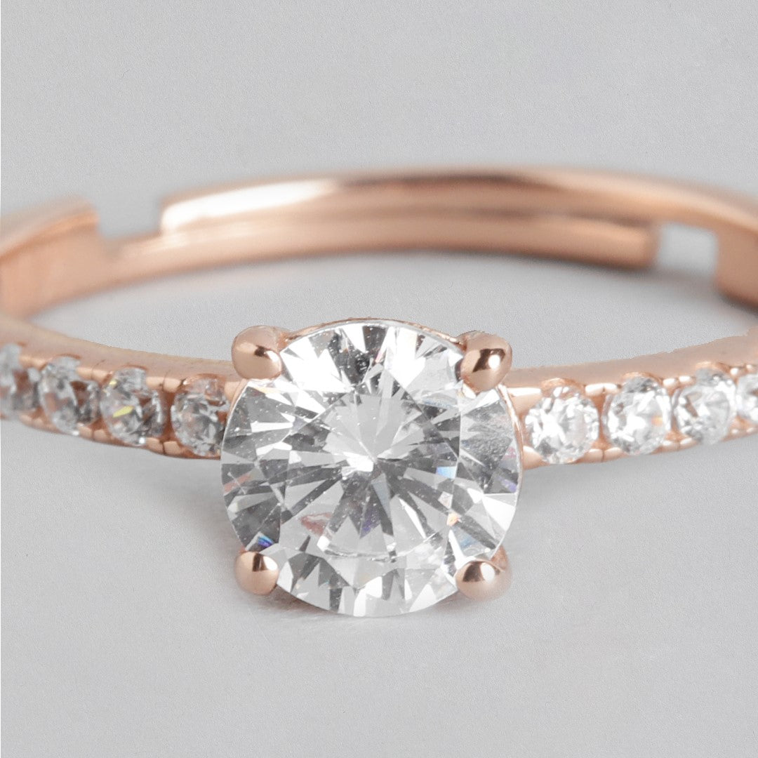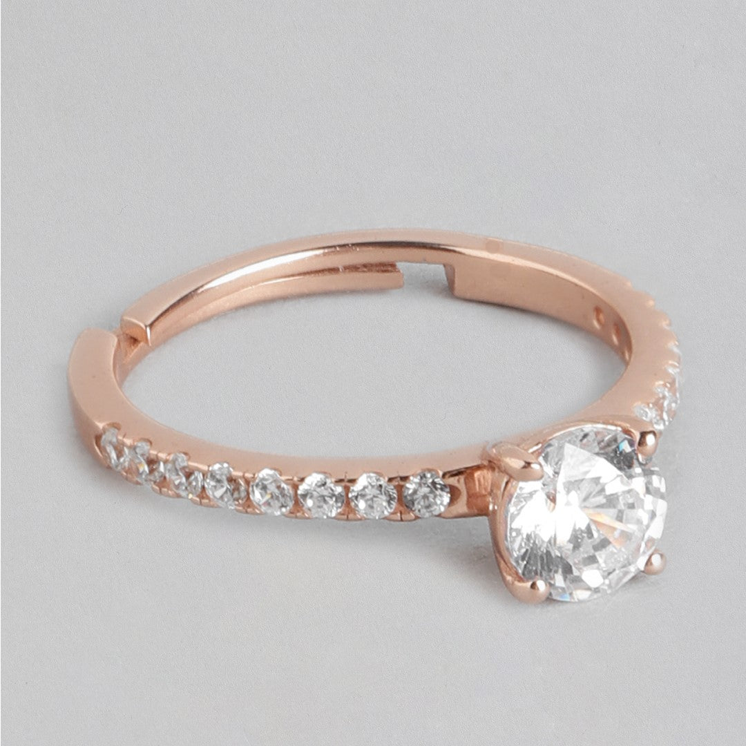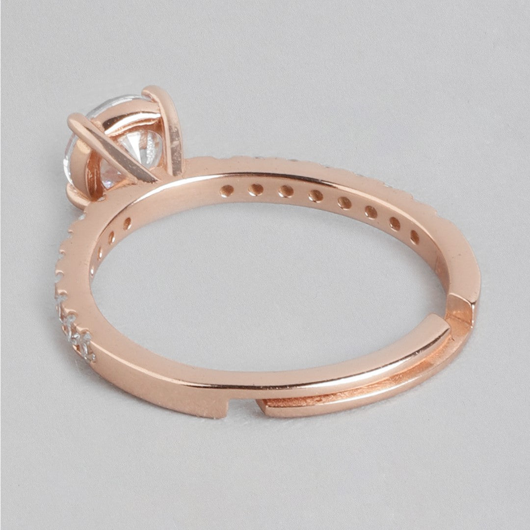 Radiant Rose-gold Gleam 925 Sterling Silver CZ Ring (Adjustable)