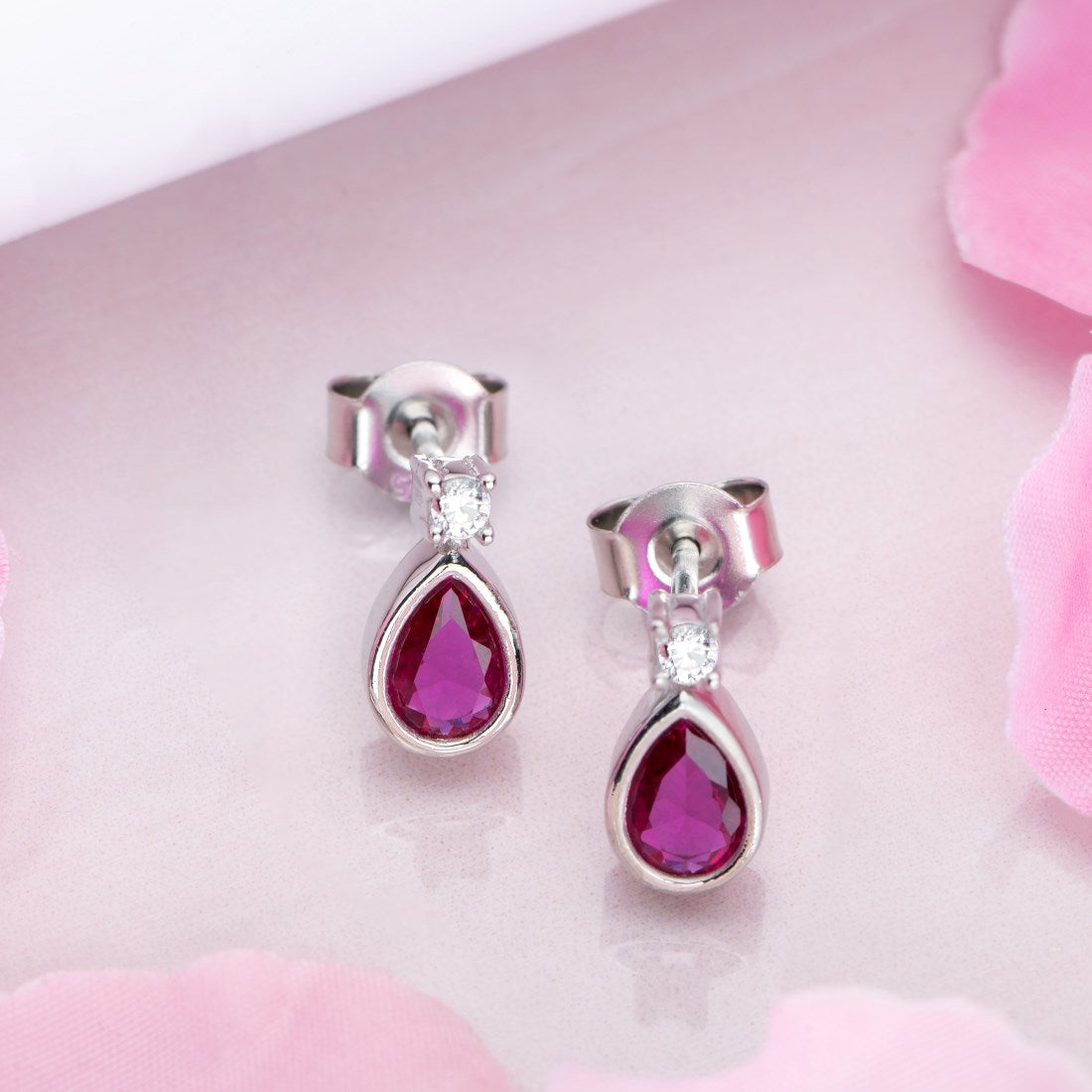 Radiant Rouge Elegance Rhodium-Plated 925 Sterling Silver Earrings