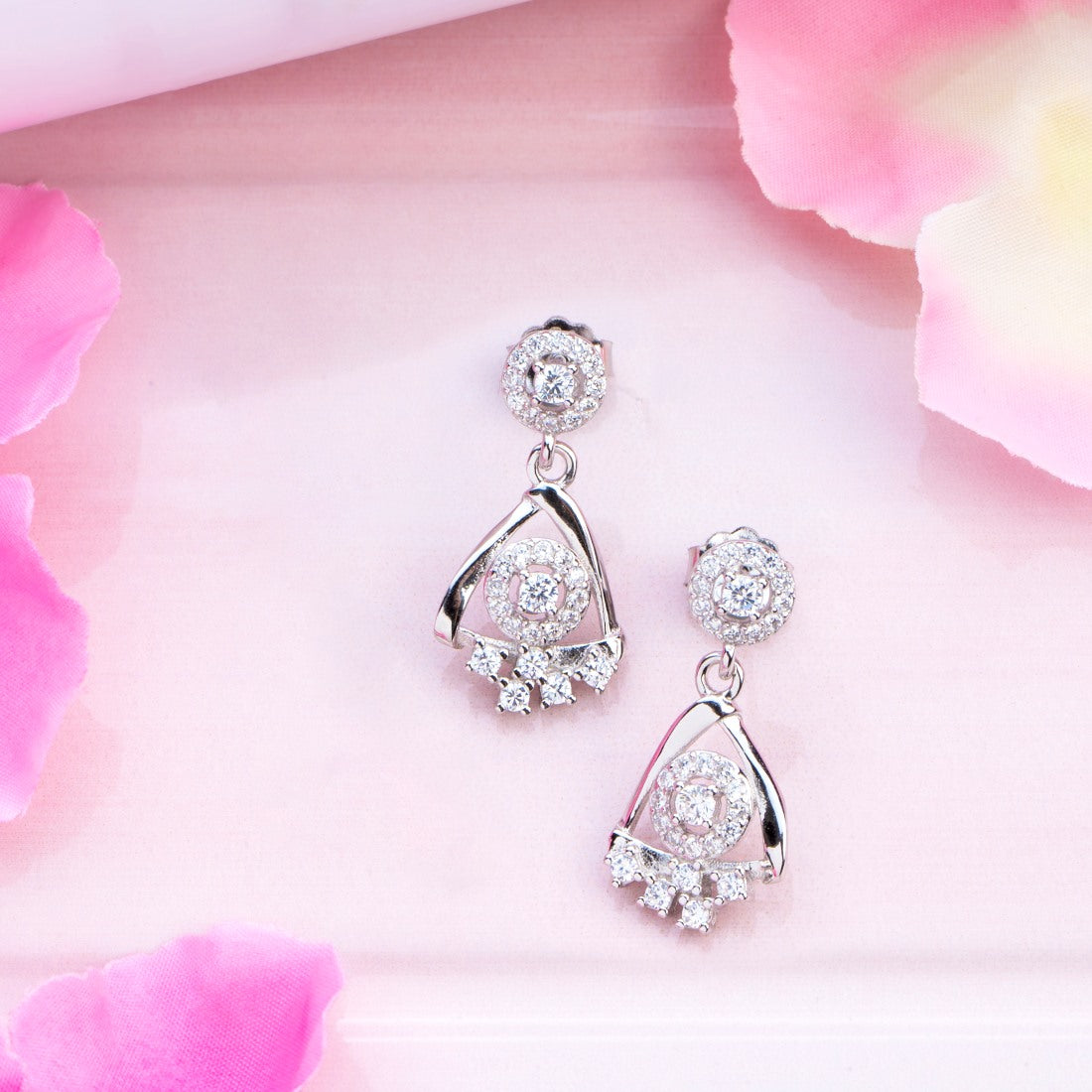 Product Description:- Drape yourself in timeless elegance with our Radiant Zirconia Elegance Earrings. Crafted from high-quality 925 Sterling Silver and plated with enduring rhodium, these earrings showcase a classic design embellished with the brilliance of Cubic Zirconia. The result is a stunning accessory that effortlessly blends sophistication with modern allure, making it the perfect choice for adding a touch of glamour to any ensemble.