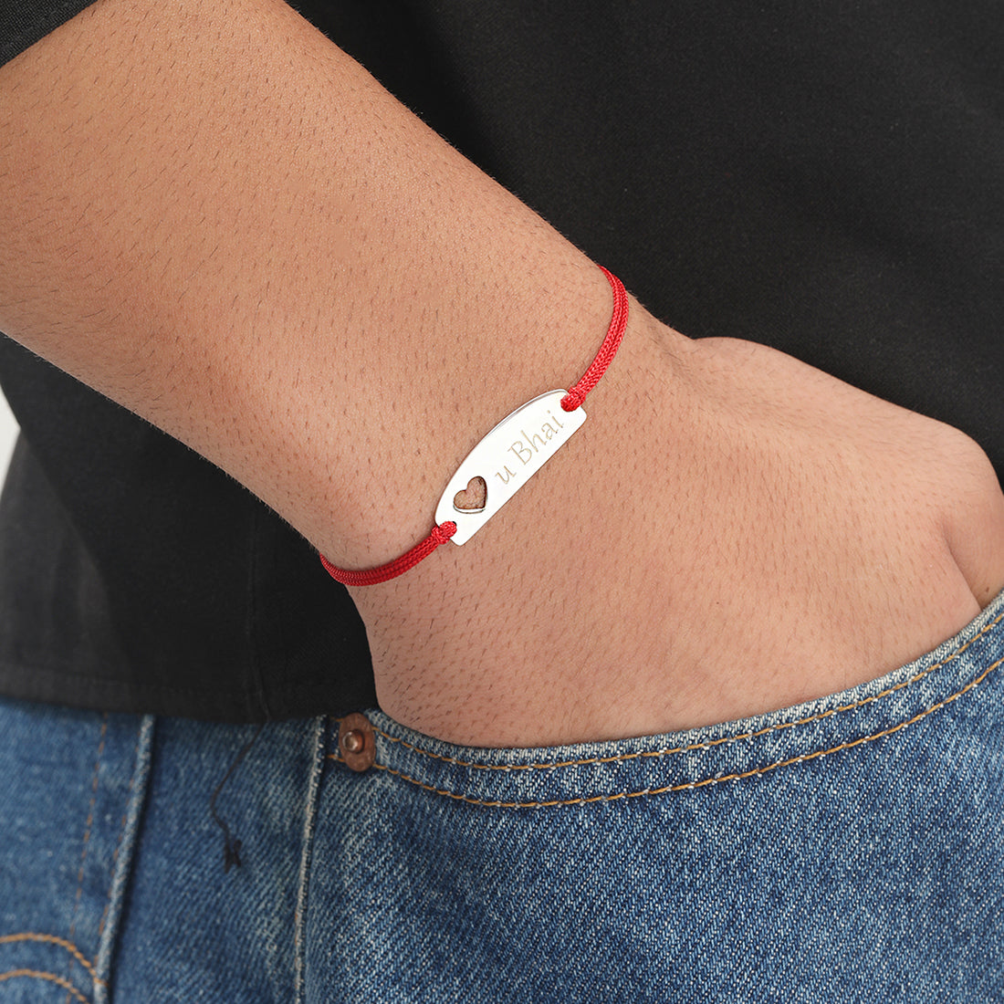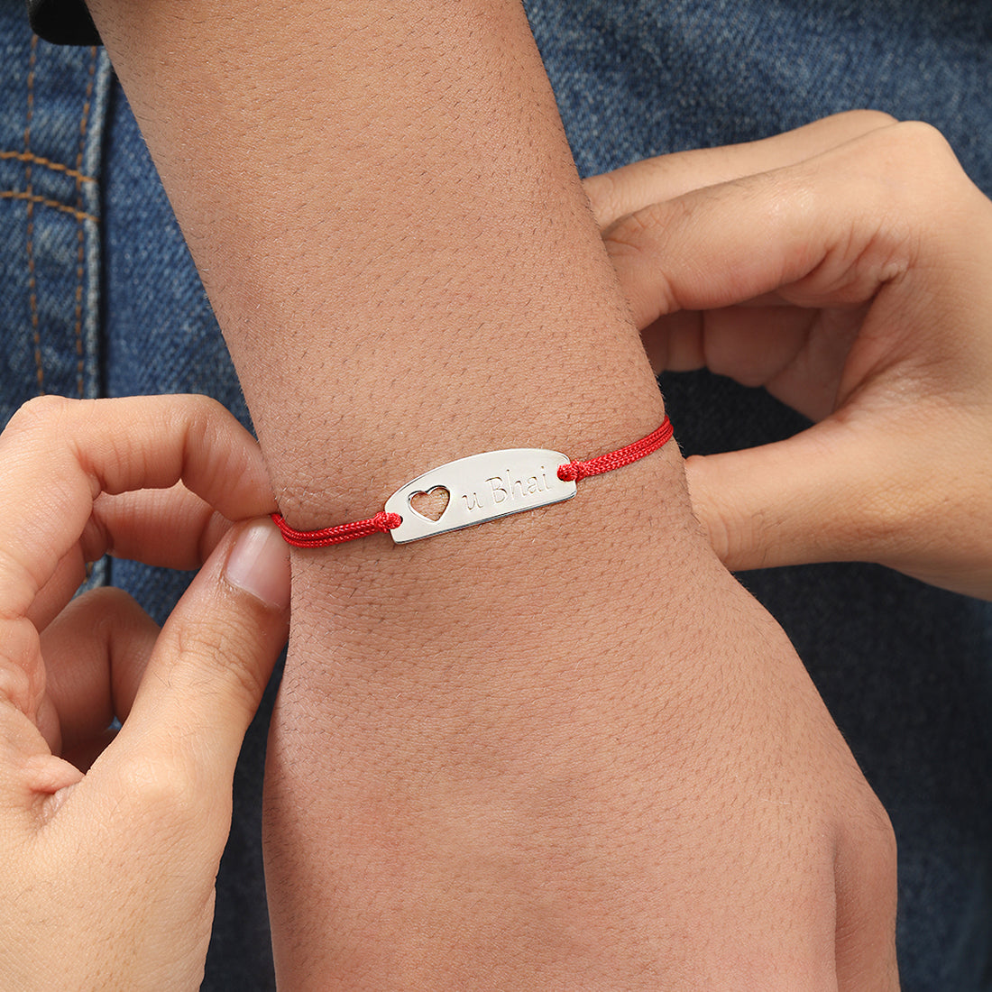 Product Description:- Zavya presents to you a sterling silver Rakhi bracelet with Love U Bhai sign as the centerpiece. The embellishments up the beauty of the symbol, reminding you that anything is possible!