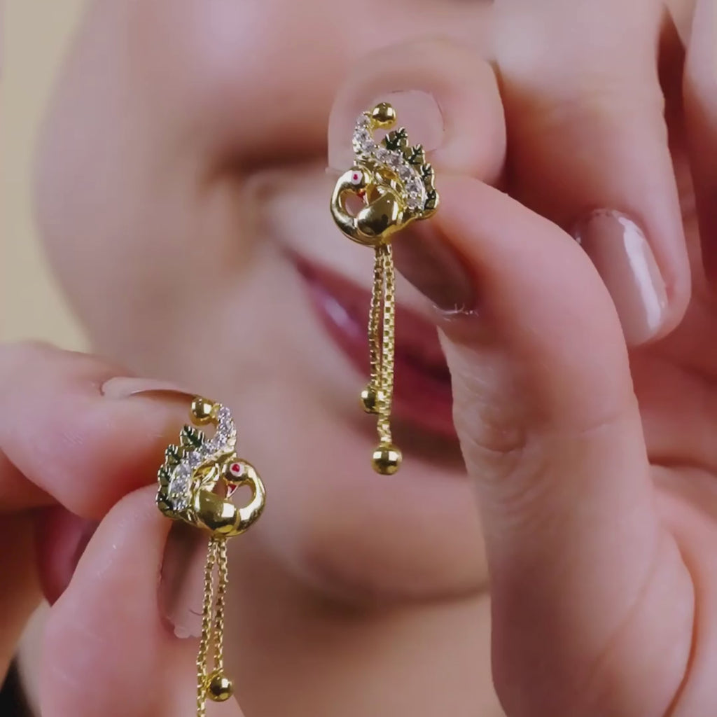 Regal Plumage 925 Sterling Silver Gold-Plated Peacock Earrings