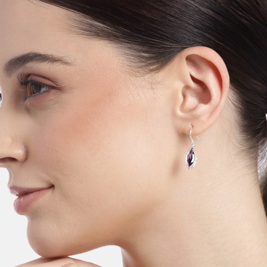 Product Description:- Adorn your ears with elegance. These Regal Radiance Rhodium-Plated Drop Earrings feature captivating purple CZ stones, exuding sophistication and charm. The rhodium plating enhances the lustrous shine, making them a perfect accessory for any occasion. Let these earrings elevate your style and add a touch of regality to your ensemble.