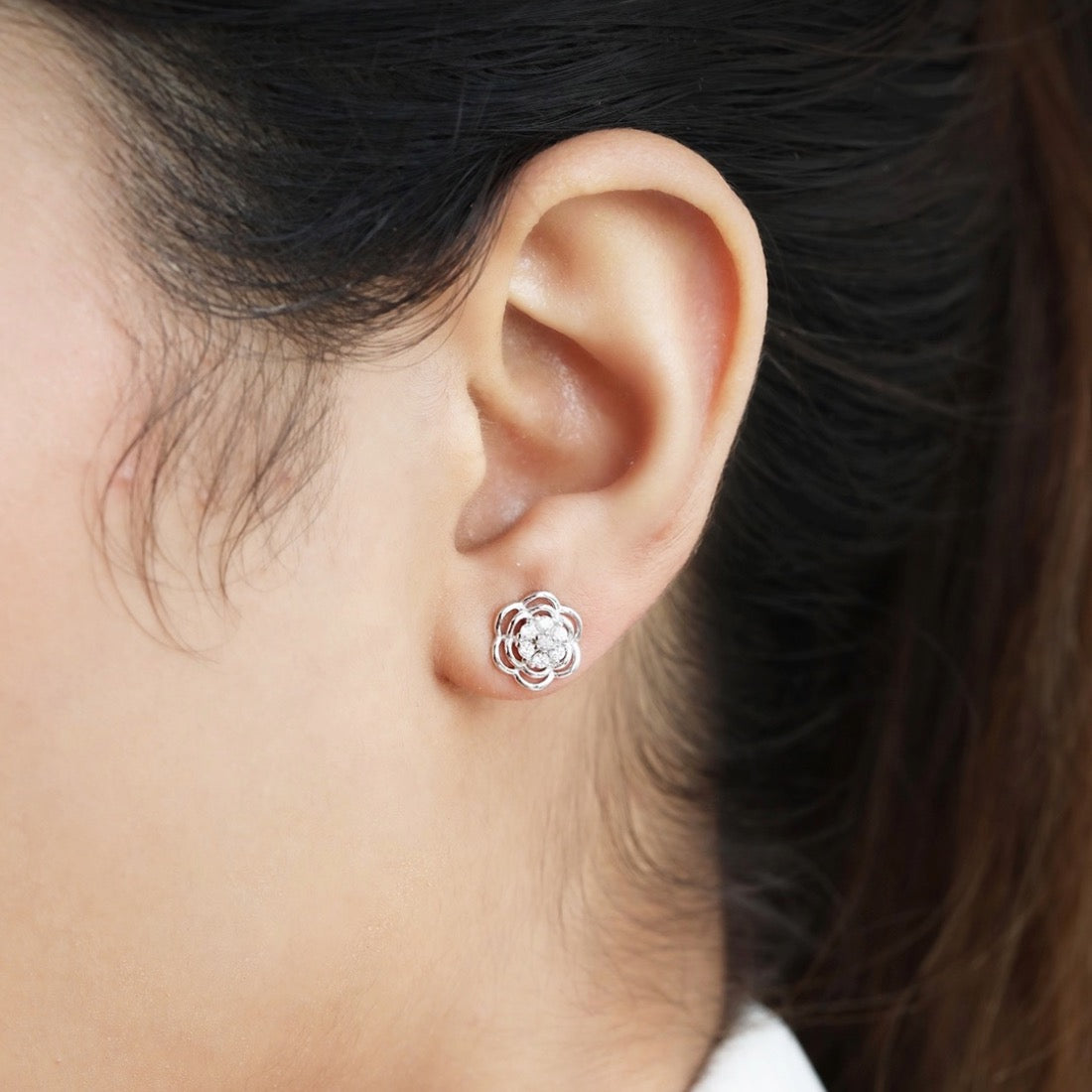 Product Description:- Elevate your elegance with our 'Rhodium Blossom' Cubic Zirconia Flower 925 Sterling Silver Earrings. These exquisite earrings feature a delicate floral pattern adorned with sparkling cubic zirconia stones, all set within the sleek beauty of rhodium-plated sterling silver. Their timeless design adds a touch of sophistication to any outfit, making them perfect for both special occasions and everyday wear. 'Rhodium Blossom' captures the essence of enduring beauty and radiates a captivating, luminous charm that's sure to make a lasting impression.