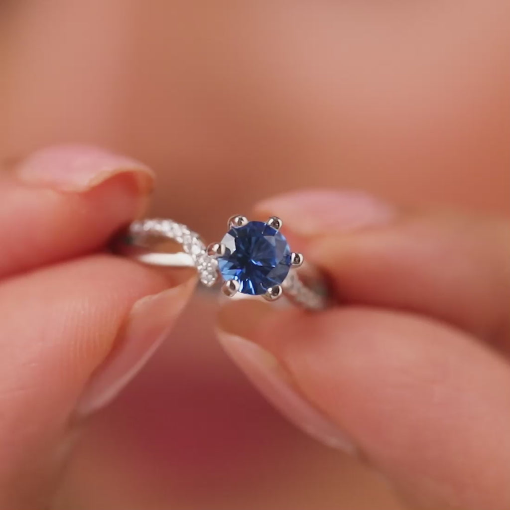 Made in rhodium-plated 925 sterling silver, the ring highlights a deep blue solitaire CZ at the center, set on a graceful band with pavé-set accents. A perfect balance of elegance and symbolism.