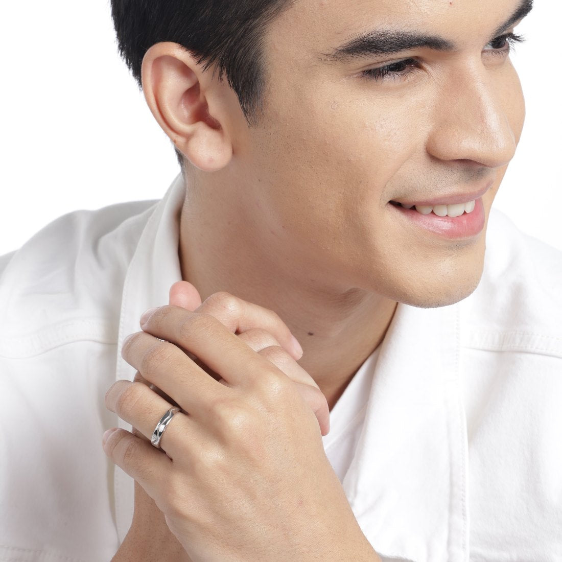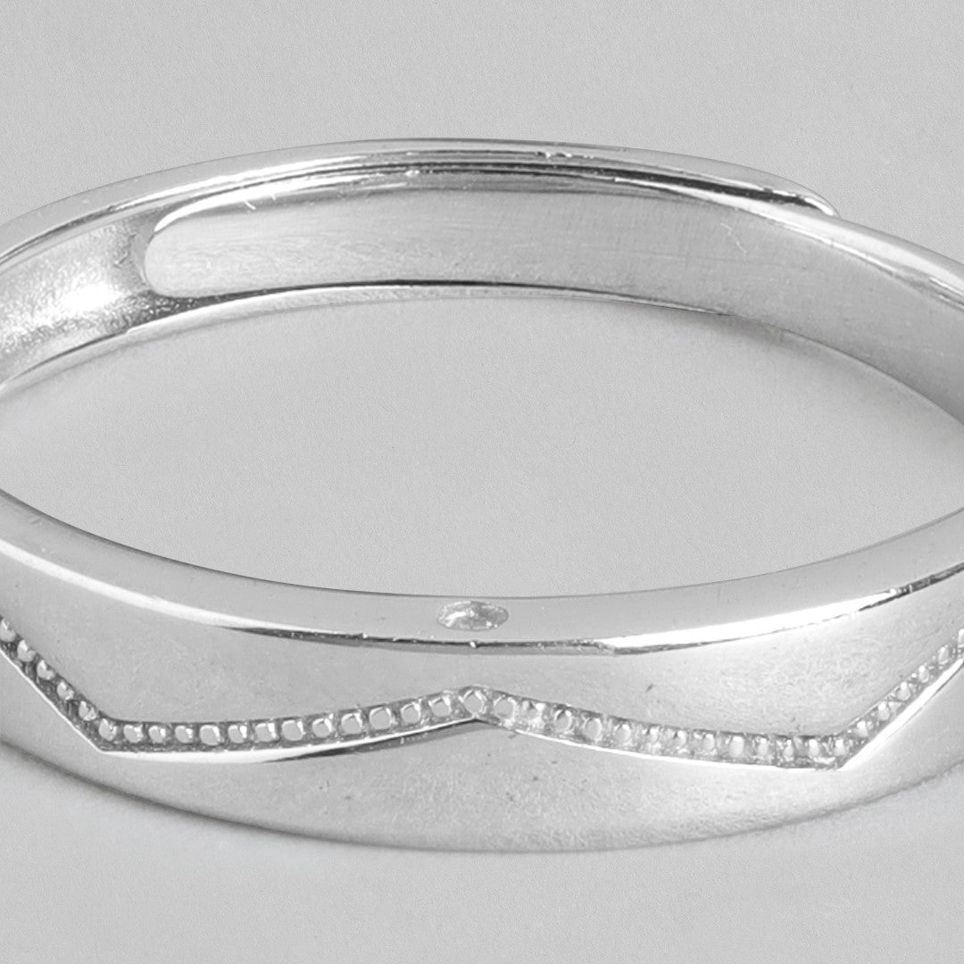 Rhodium Radiance CZ-Embellished Rhodium-Plated 925 Sterling Silver Men's Ring (Adjustable)