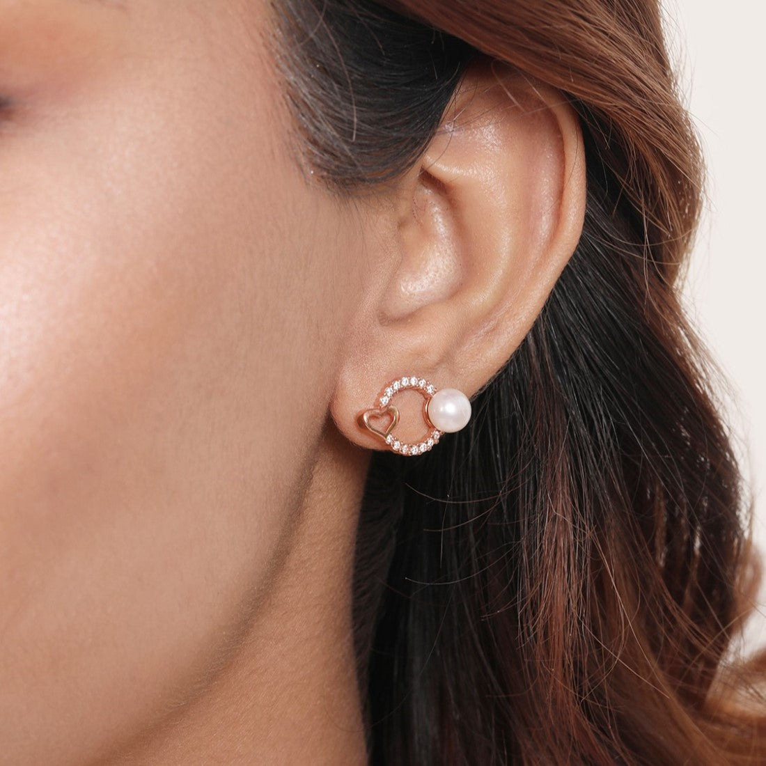 Product Description:- Embrace romance and elegance with our 'Romantic Circles' earrings. Crafted from high-quality 925 sterling silver and plated in radiant rose gold, these earrings feature a delightful combination of heart and circle motifs adorned with sparkling cubic zirconia. Elevate your style with timeless charm and sophistication.