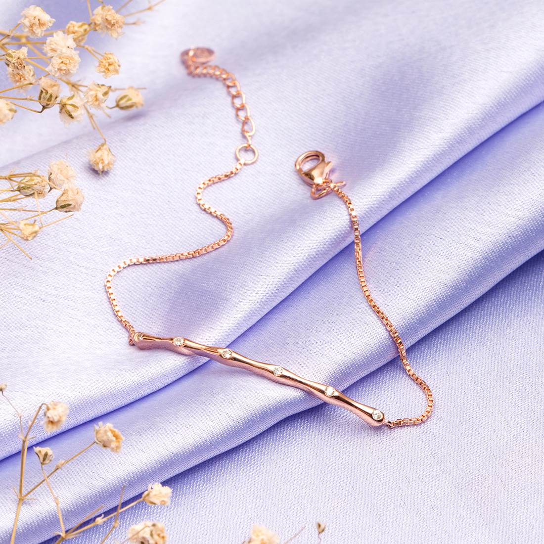 Rose Gold Bamboo Bliss 925 Sterling Silver Bracelet with Cubic Zirconia