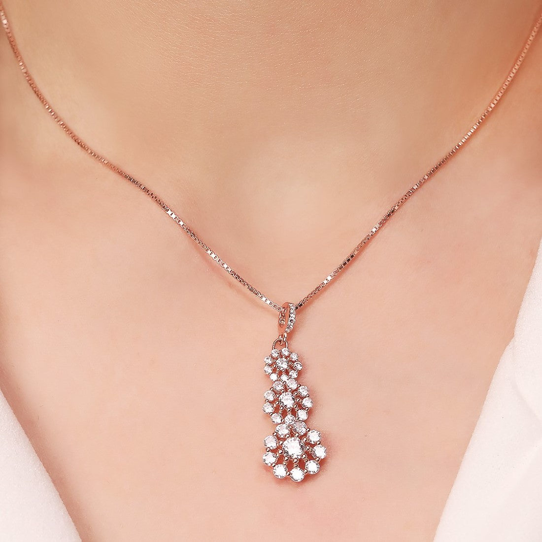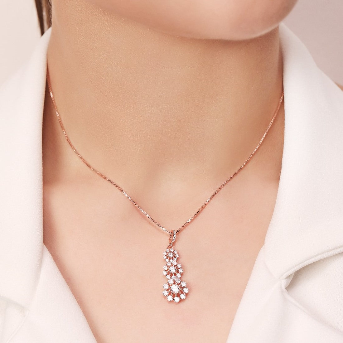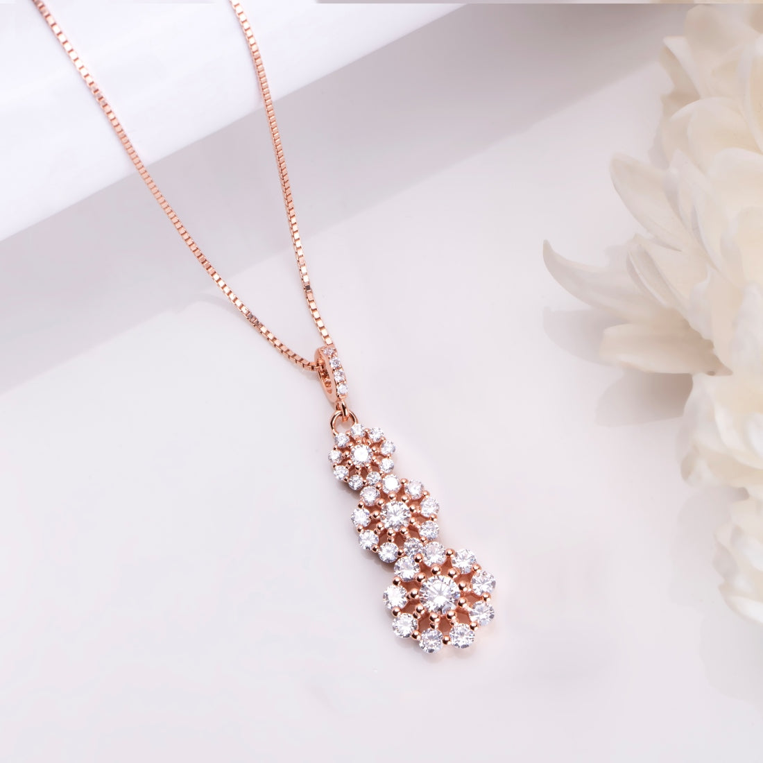 Product Description:- Add a touch of luxury and elegance to any outfit with our Rose Gold Blossom pendant. Handcrafted with high-quality 925 sterling silver and rose gold plating, it's eye-catching and perfect for all occasions. Plus, it's affordable and perfect for sensitive skin. Comes with an authentication certificate for quality assurance. Trending and designer, this pendant is a must-have for all women's jewelry collections.