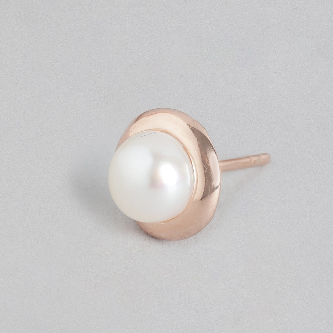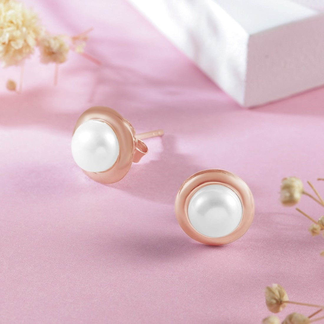 Rose Gold Elegance Freshwater Pearl 925 Sterling Silver Stud Earrings