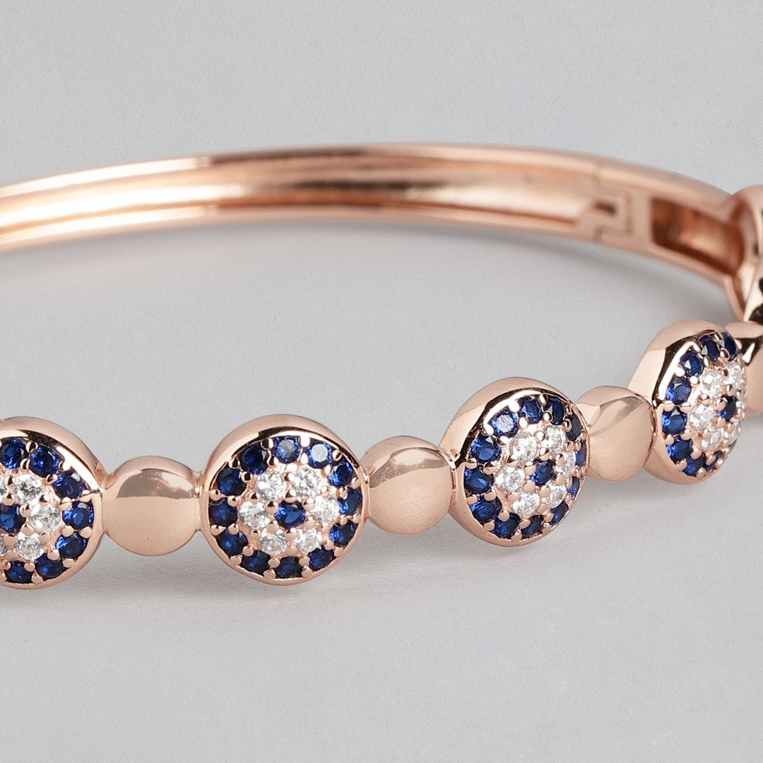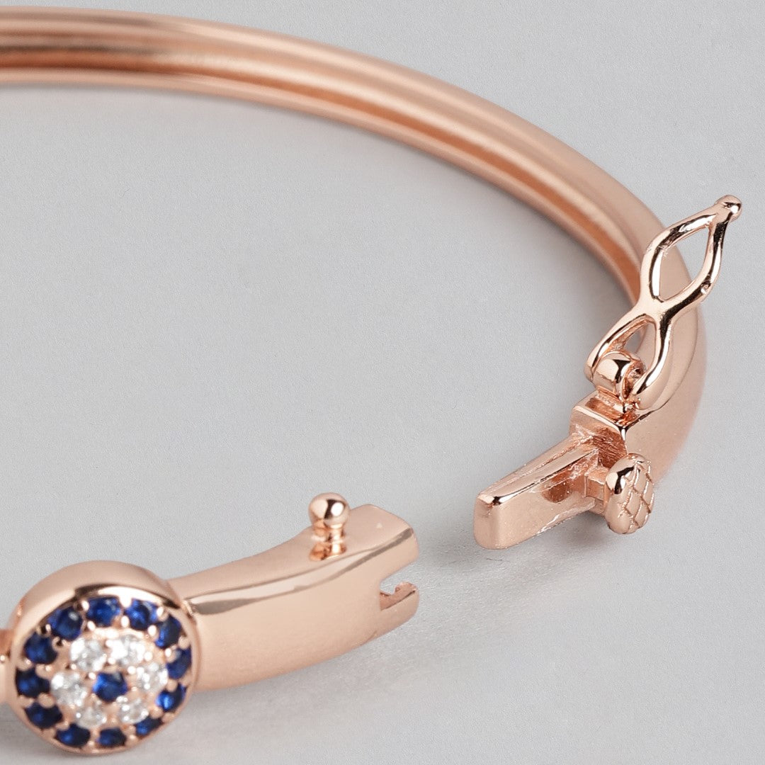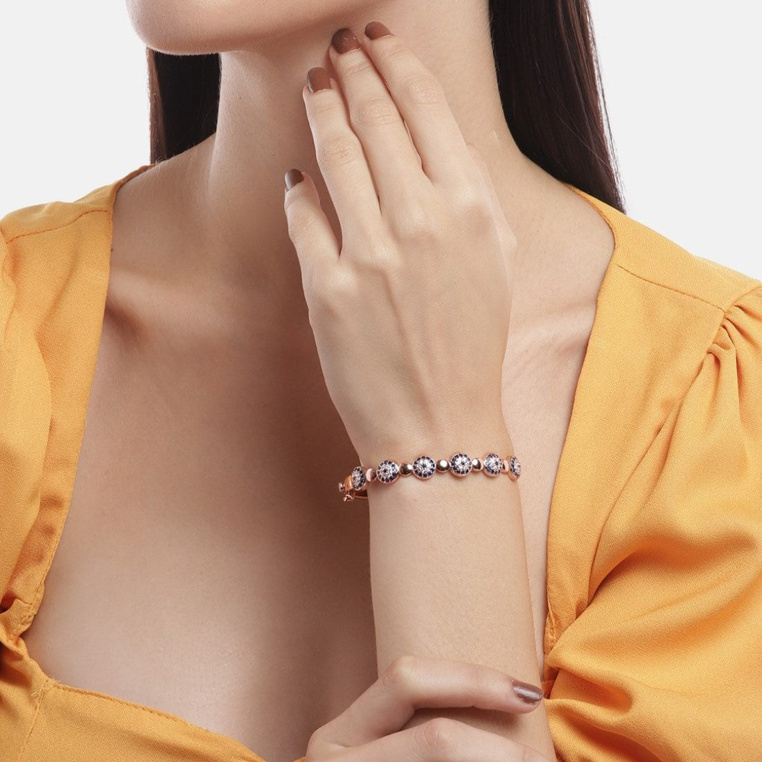 Product Description:- Embrace the allure of 'Rose Gold Eternity,' a striking 925 sterling silver bracelet plated in radiant rose gold. Its design symbolizes endless beauty and elegance, capturing the essence of eternity. This bracelet exudes a timeless charm that effortlessly complements any attire. Elevate your style with this piece, a perfect blend of sophistication and warmth, allowing your wrist to shine with enduring grace.