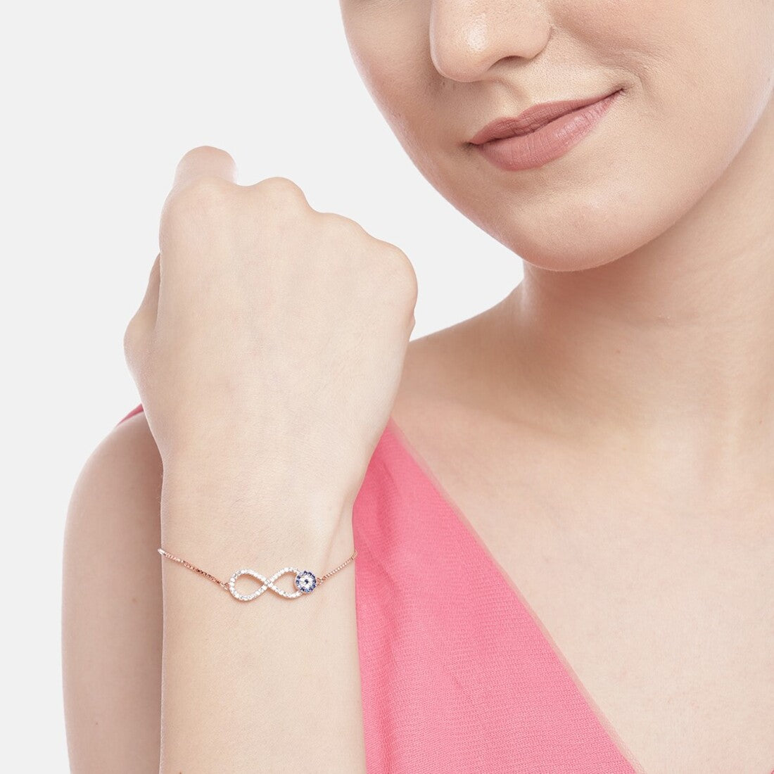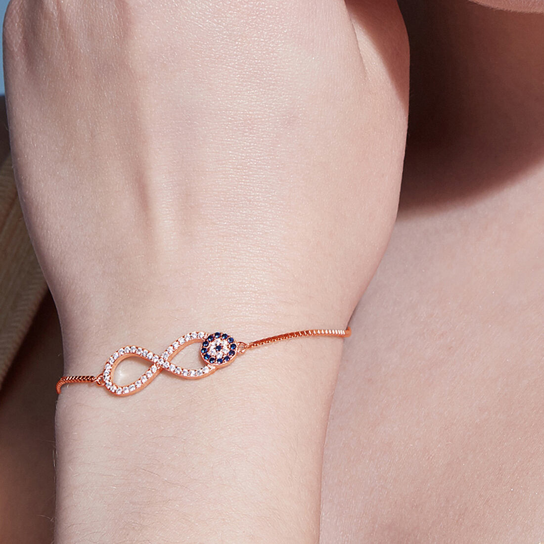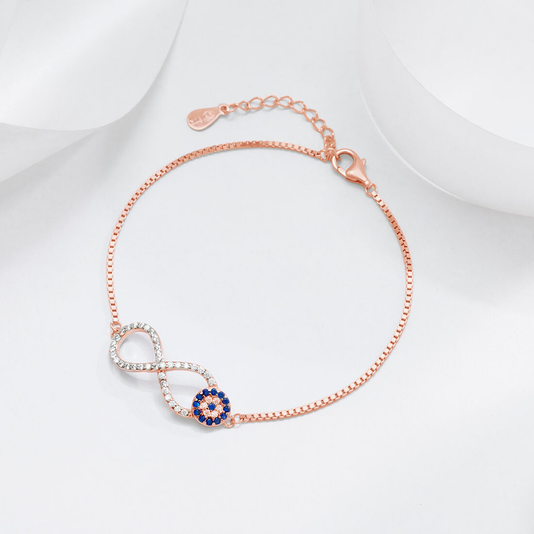 Rose Gold Infinity Evil Eye 925 Silver Bracelet