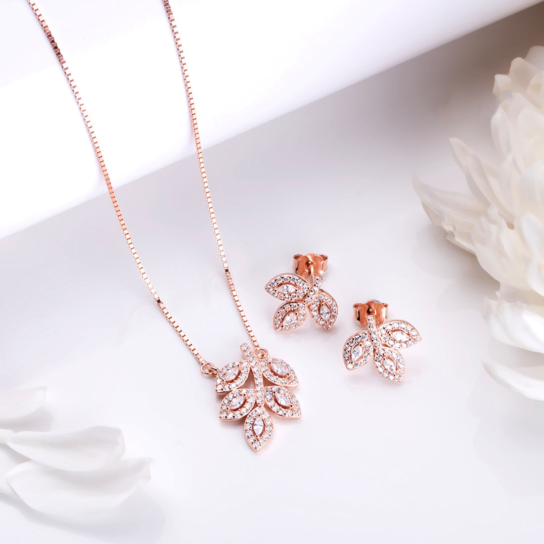 Rose Gold Leaf Harmony 925 Sterling Silver Jewelry Set
