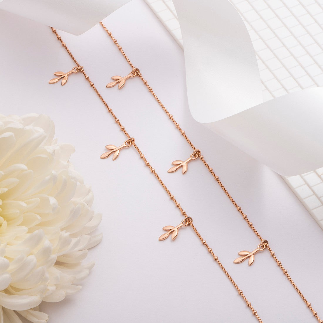 Rose Gold Leafy 925 Sterling Silver Anklet