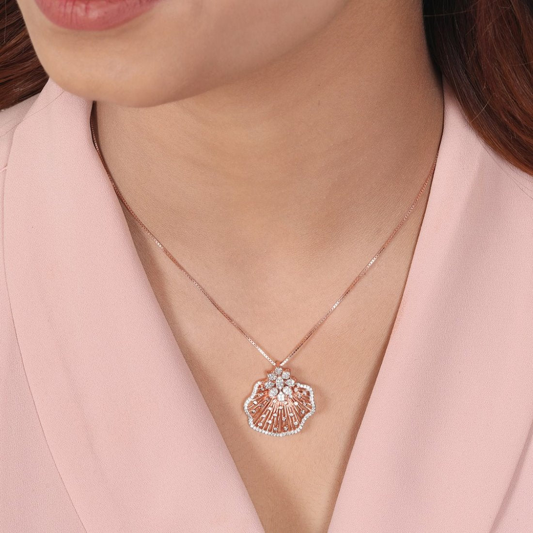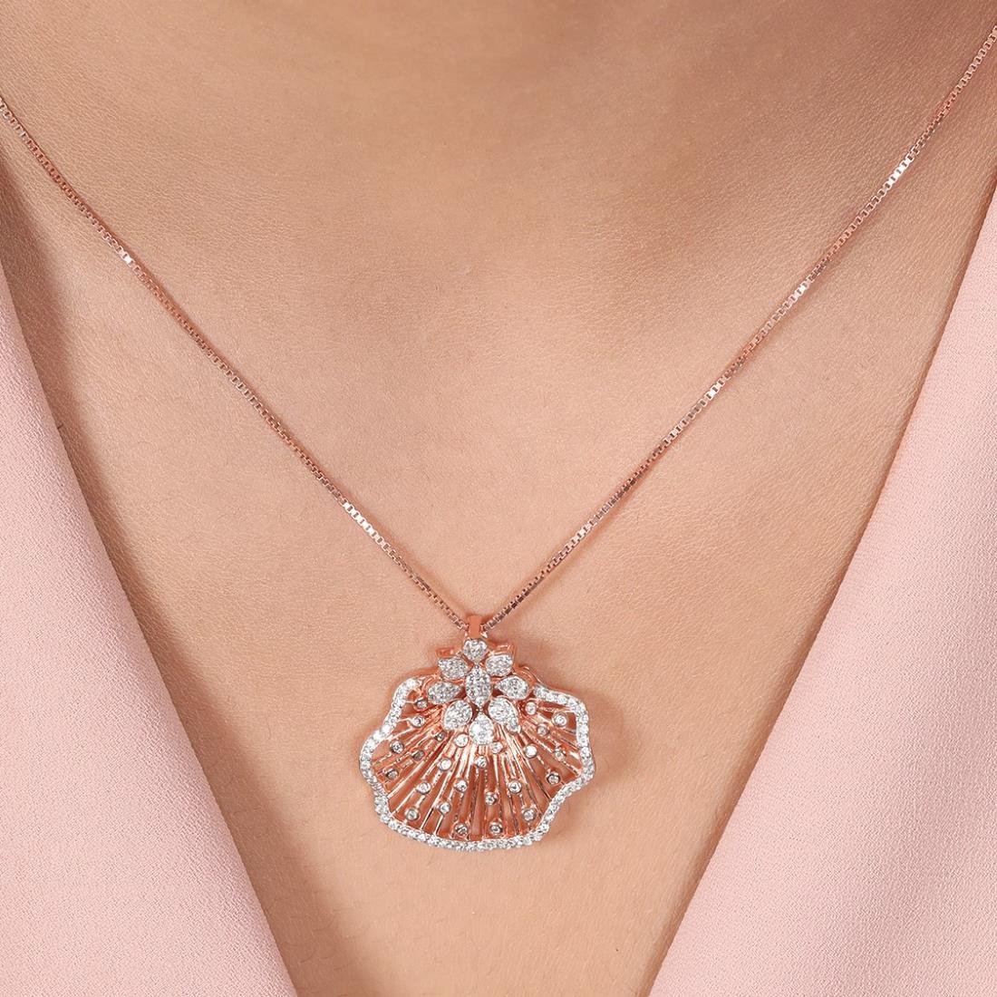 Product Description:- Bask in the enchanting glow of our 'Rose Petal Radiance' 925 Sterling Silver Rose Gold-Plated Flower Pendant. The intricately designed flower pattern, plated in lustrous rose gold, captures the essence of nature's elegance and timeless beauty. Each petal is adorned with sparkling cubic zirconia gemstones, casting a radiant and mesmerizing aura. The delicate design and warm rose gold hue make this pendant a symbol of femininity and grace. Elevate your style with 'Rose Petal Radiance,' a perfect fusion of nature-inspired charm and modern allure. This pendant is a radiant statement piece, adding a touch of romance and sophistication to any occasion where you wish to showcase your unique sense of style with timeless elegance.