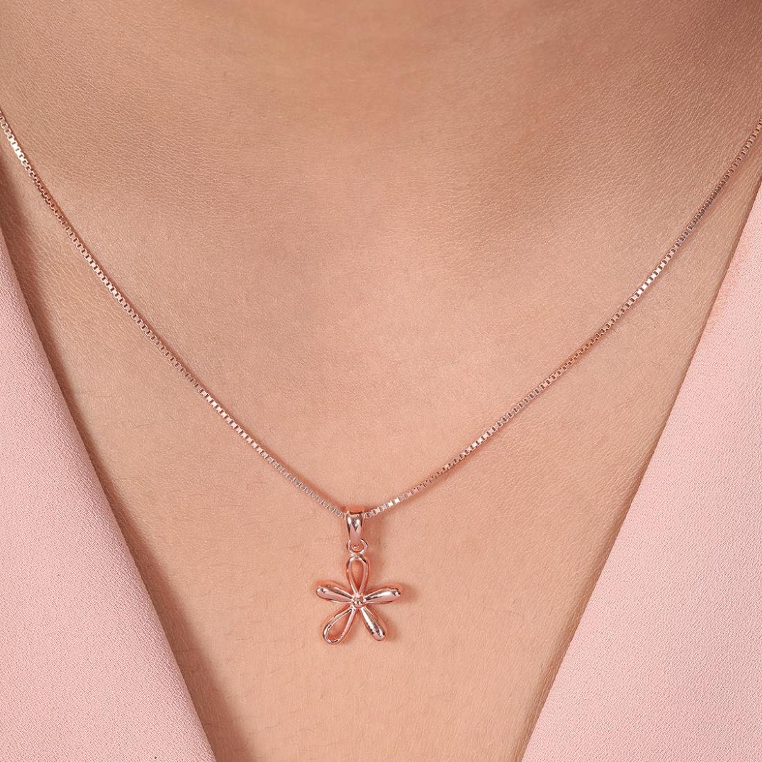 Product Description:- Elevate your elegance with our Rose Petal Sparkle rose gold plated 925 sterling silver pendant. This exquisite pendant features a delicate flower pattern adorned with sparkling cubic zirconia gemstones, adding a touch of glamour and sophistication to your ensemble. The rose gold plating enhances the beauty of the pendant with a warm and luxurious glow. Make a statement of timeless beauty and feminine charm with this versatile piece that effortlessly complements any outfit.