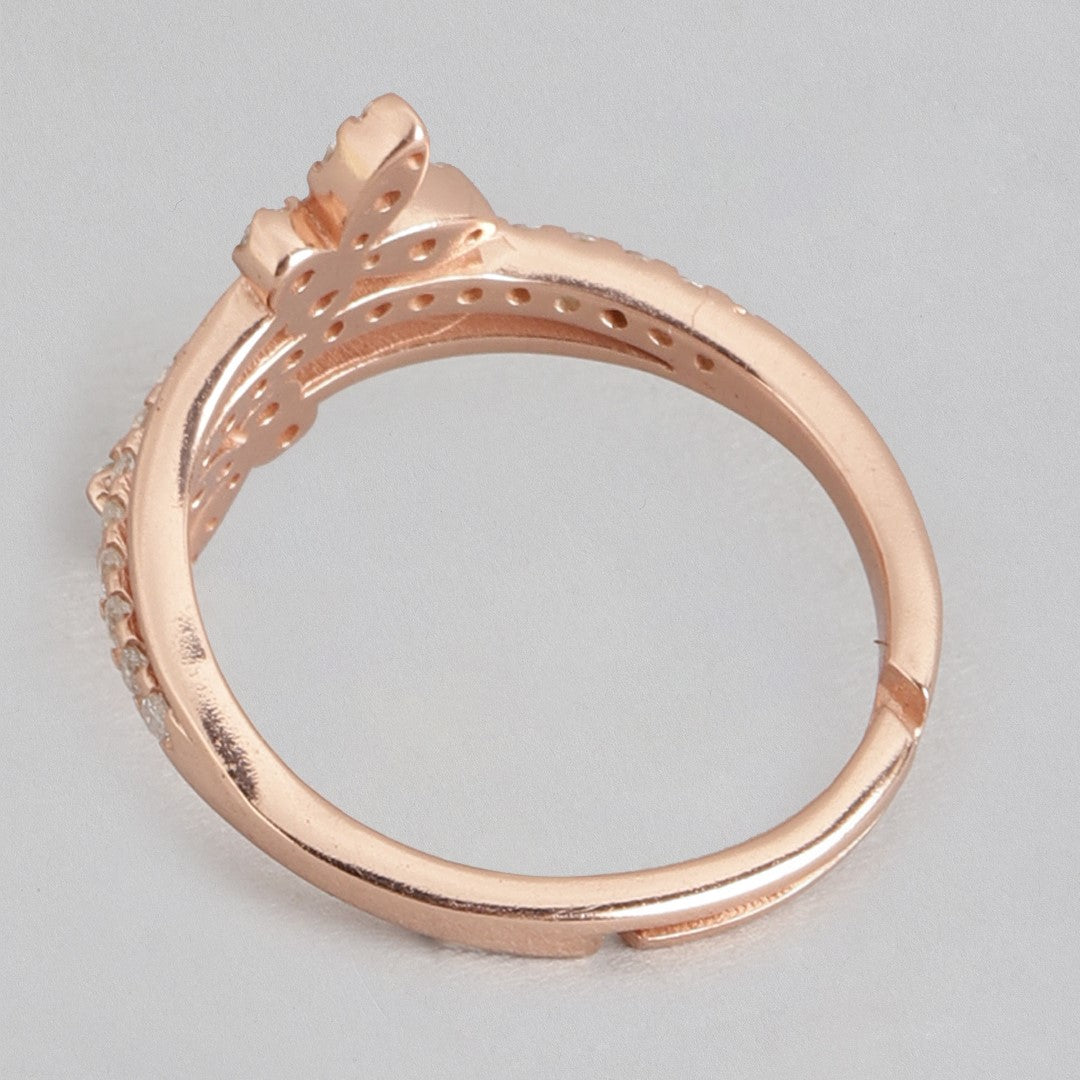 Rose-gold Butterfly Flutter 925 Sterling Silver Women's Ring (Adjustable)
